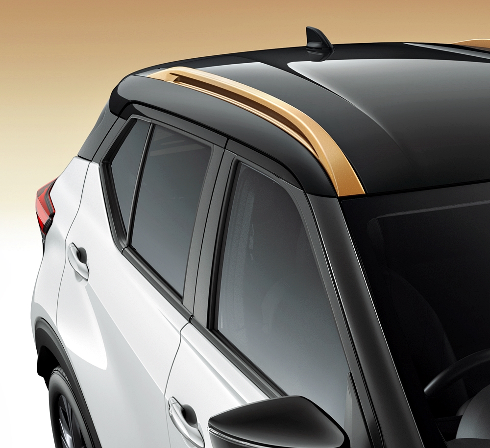 - Riasan tembaga pada jeriji, cermin sisi dan rel bumbung dan simbol kepada kenderaan elektrik.