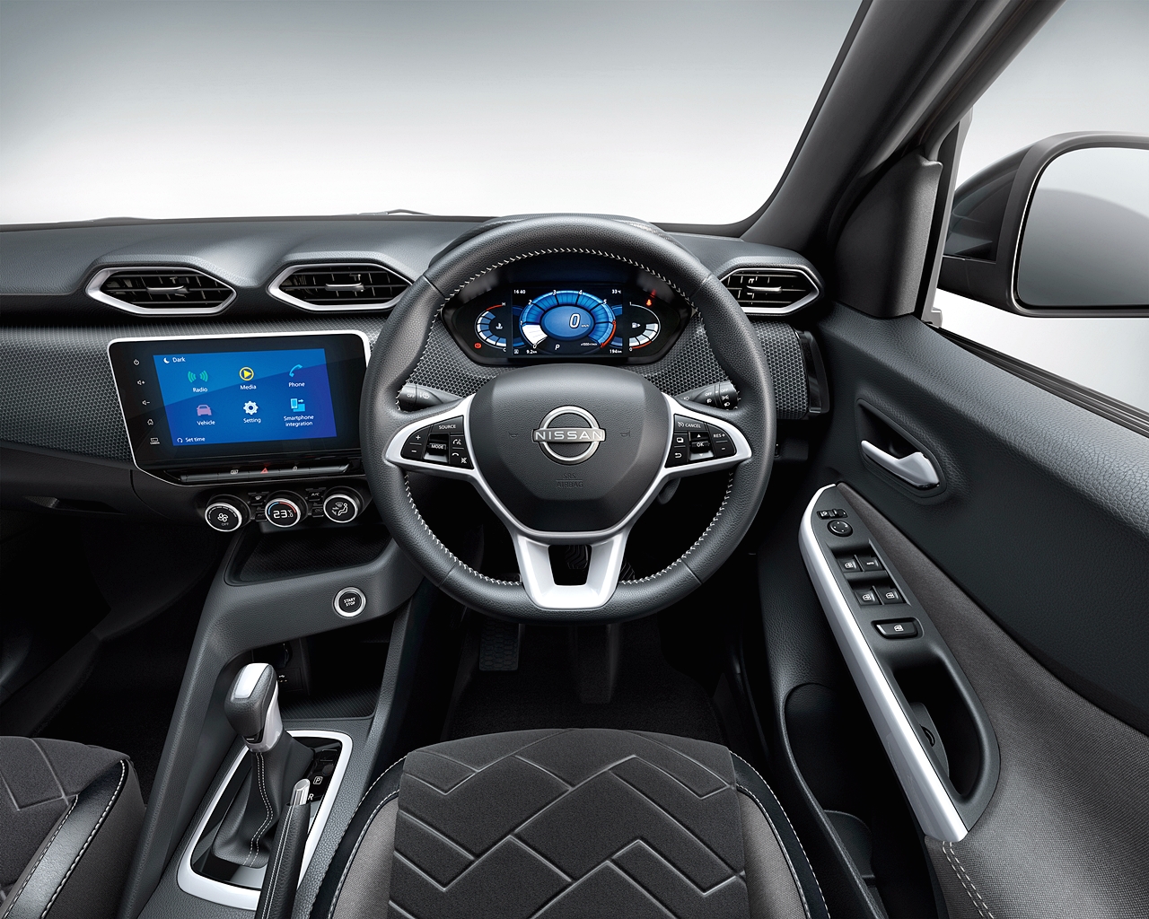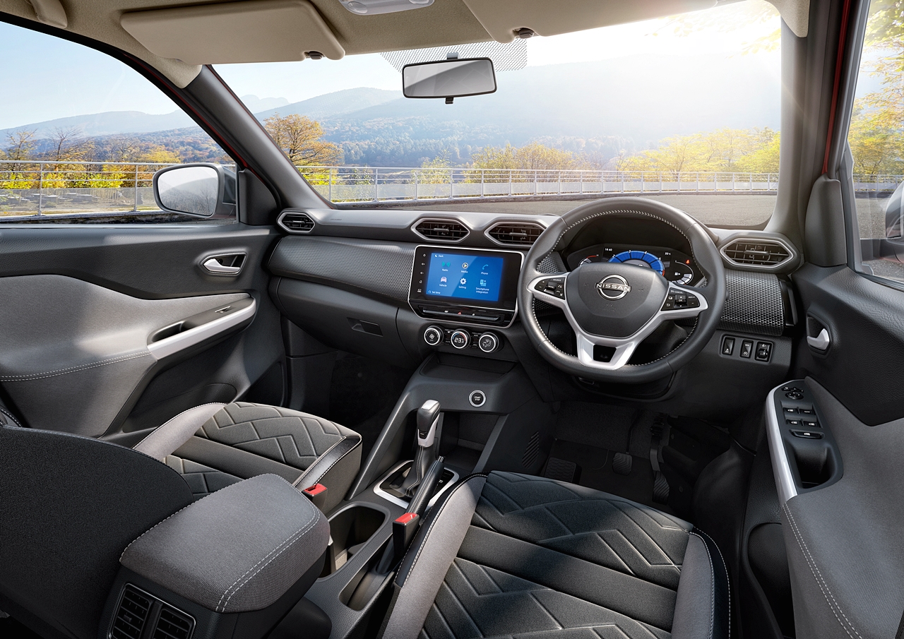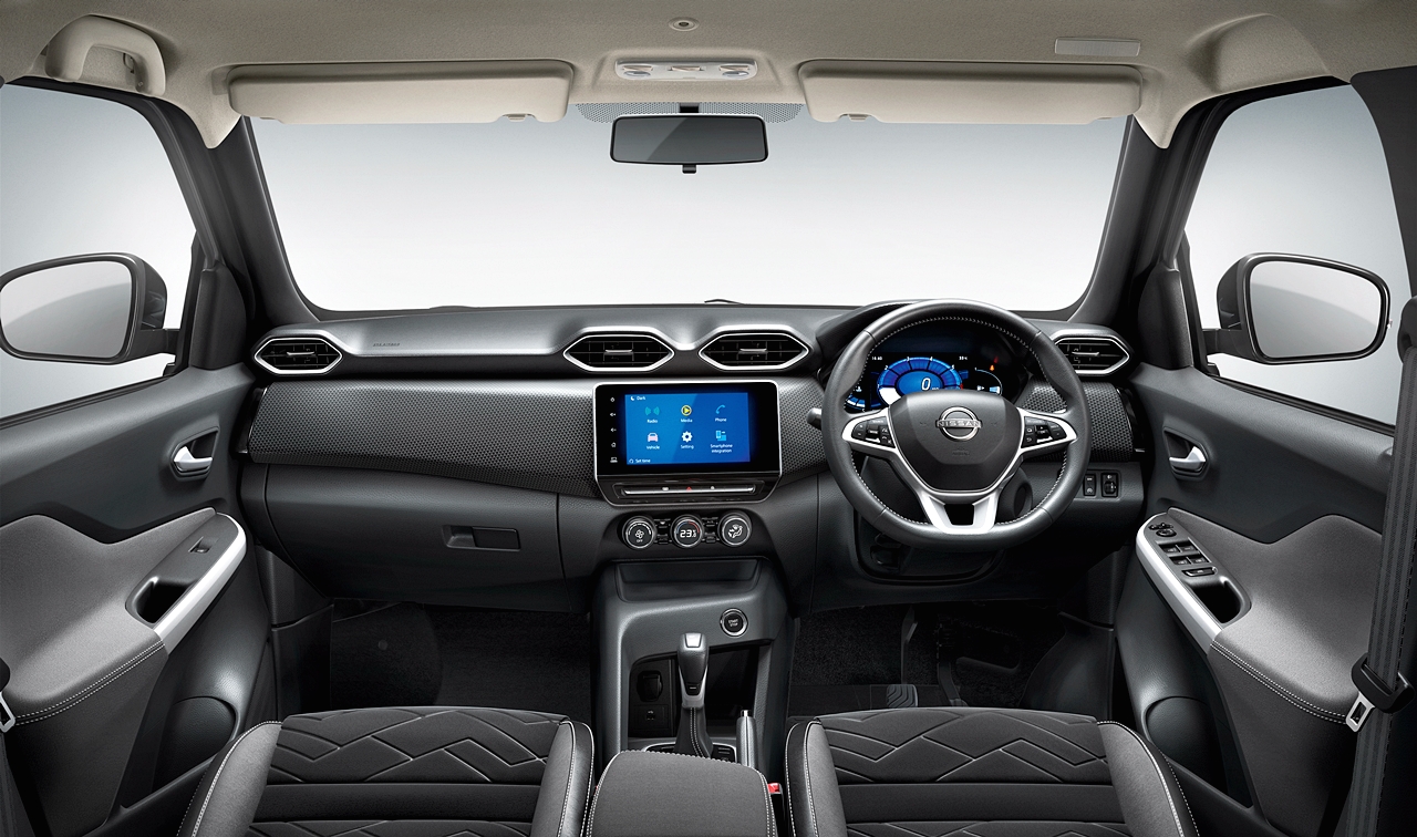 Selain itu, Magnite dilengkapi skrin sentuh 8 inci dengan fungsi konektiviti Apple CarPlay dan Android Auto. Turut dilengkapi ialah Monitor Pandang Keliling (AVM) 360º dalam membantu pandangan sekeliling.