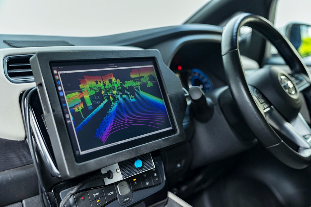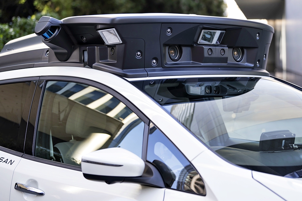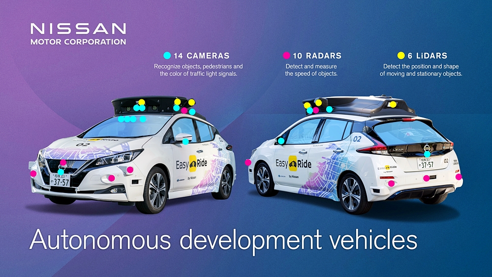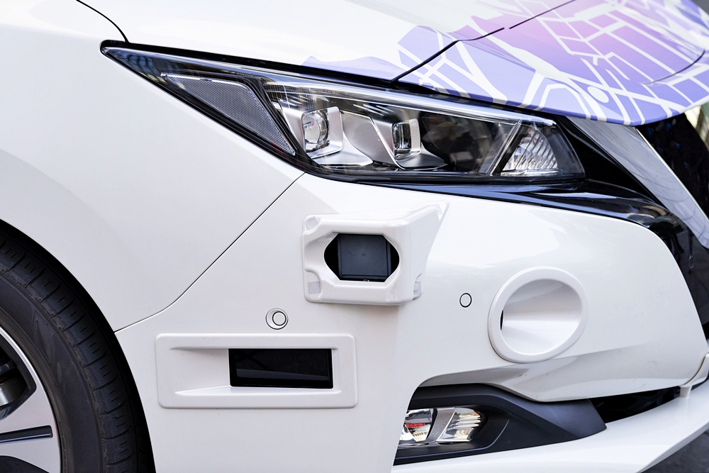 Nissan LEAF yang digunakan penuh dengan sensor, terdiri daripada 14 kamera, 10 radar dan enam LIDAR (Light Detection and Ranging).