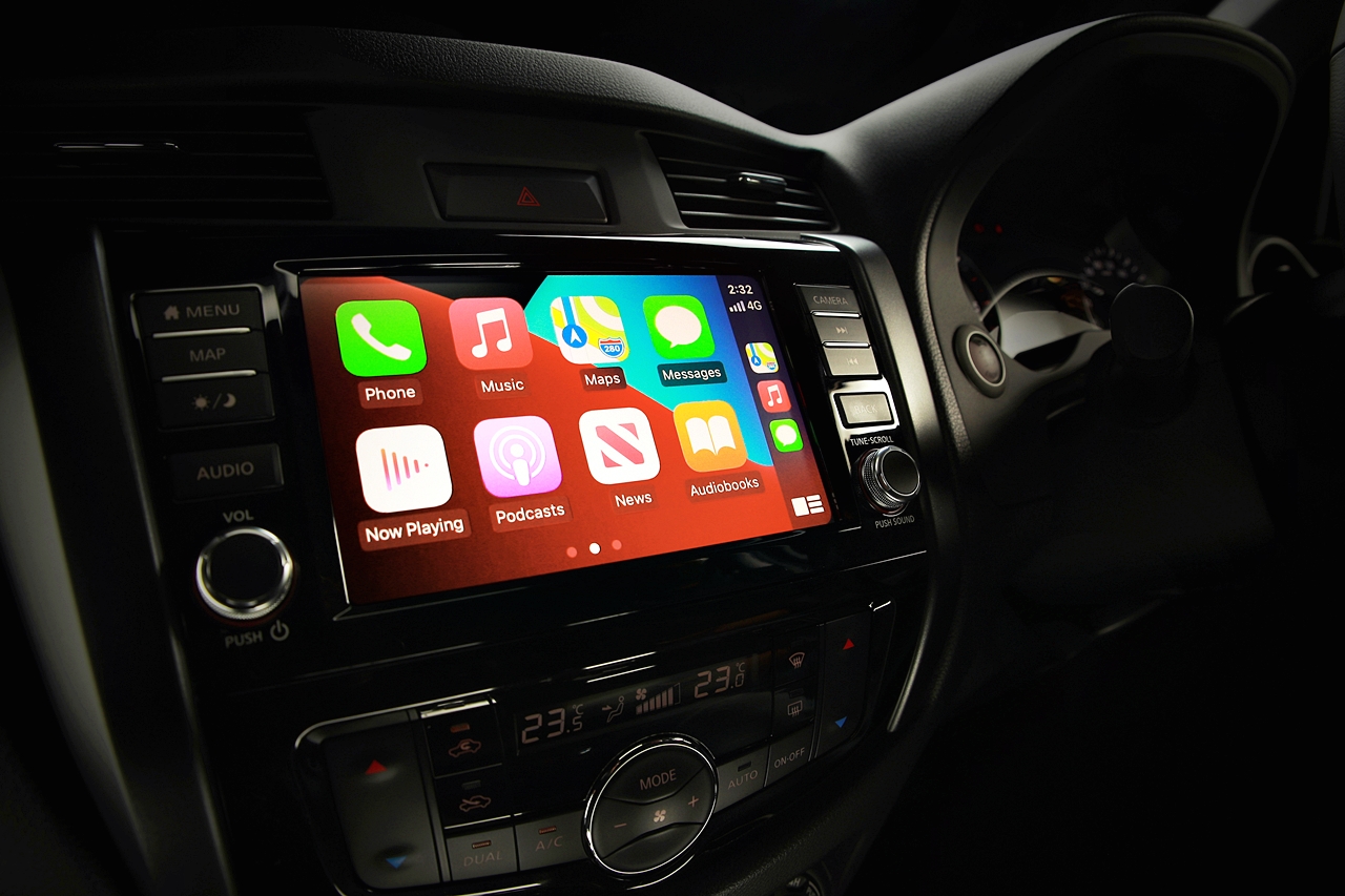 Sistem infotainment Nissan Connect ditonjolkan melalui skrin sentuh 8 inci dan konektiviti Apple CarPlay, termasuk palam USB, dan USB-C di depan.