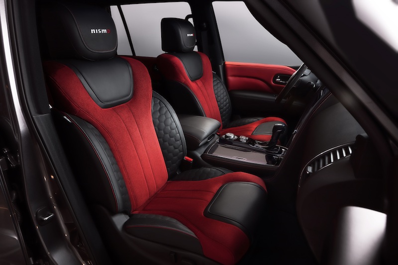 - Struktur badan diperkuat untuk meningkatkan ketegaran dengan sistem suspensi diubah kepada jenama Bilstein. Rim aluminium 22 inci RAYS pada Patrol Nismo ini 4.5kg lebih ringan berbanding stok standard. Talaan lain membabitkan sistem stereng kuasa untuk pengendalian lebih baik.