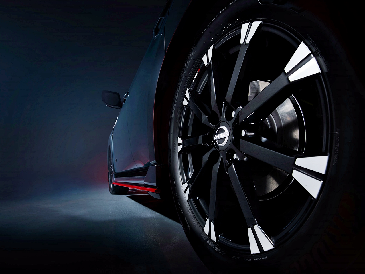 - Rim aloi tempa 22-inci hasil kerjasama dengan RAYS dalam rekaan 9 jejari eksklusif Nismo. Rim itu lebih ringan 23 peratus berbanding rim asas, dan ketegaran sisi serta penyejukan brek lebih baik