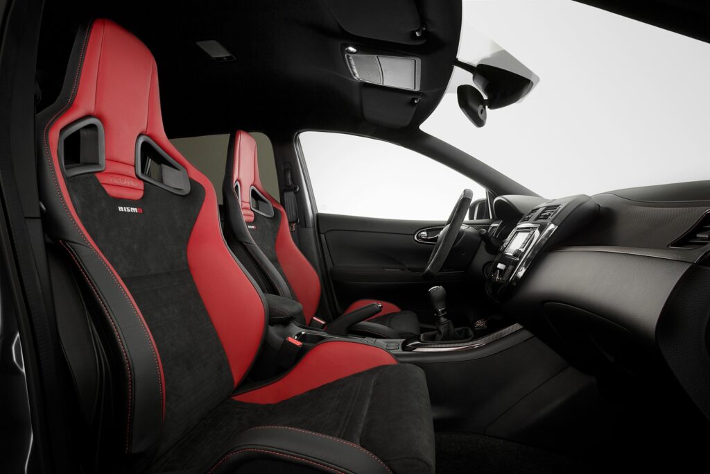 Ruang kabin bergaya ala kereta lumba dengan kerusi sport Alcantara, manakala spidometer menggunakan aksen merah dengan stereng tiga jejari dan pedal aloi. Penampilan Pulsar NISMO diserlahkan lagi profil badan rendah menerusi penggunaan set suspensi sport yang ditala semula untuk respon lebih lincah dan sporty seperti model NISMO lain.