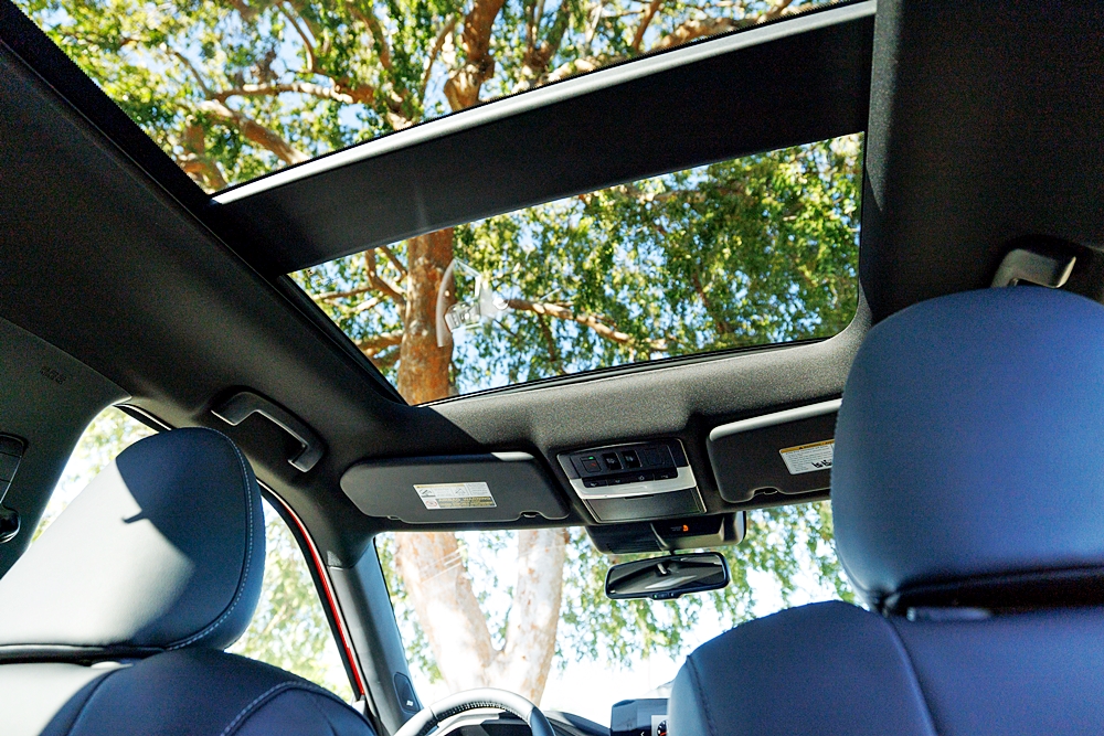 - Ciri varian Platinum (tambahan): Paparan dongak (HUD) 10 inci, sistem bunyi Bose sembilan pembesar suara, bumbung panoramik elektrik, tempat duduk belakang dengan pemanas, kerusi kulit, visor matahari pull-up pintu belakang, dua output kuasa 120V, stereng dengan pemanas dan rel bumbung hitam kilat