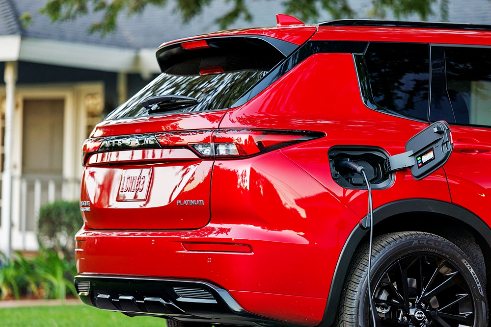 Rekabentuk Nissan Rogue PHEV 2026 mirip Outlander, kecuali rekaan gril tersendiri.