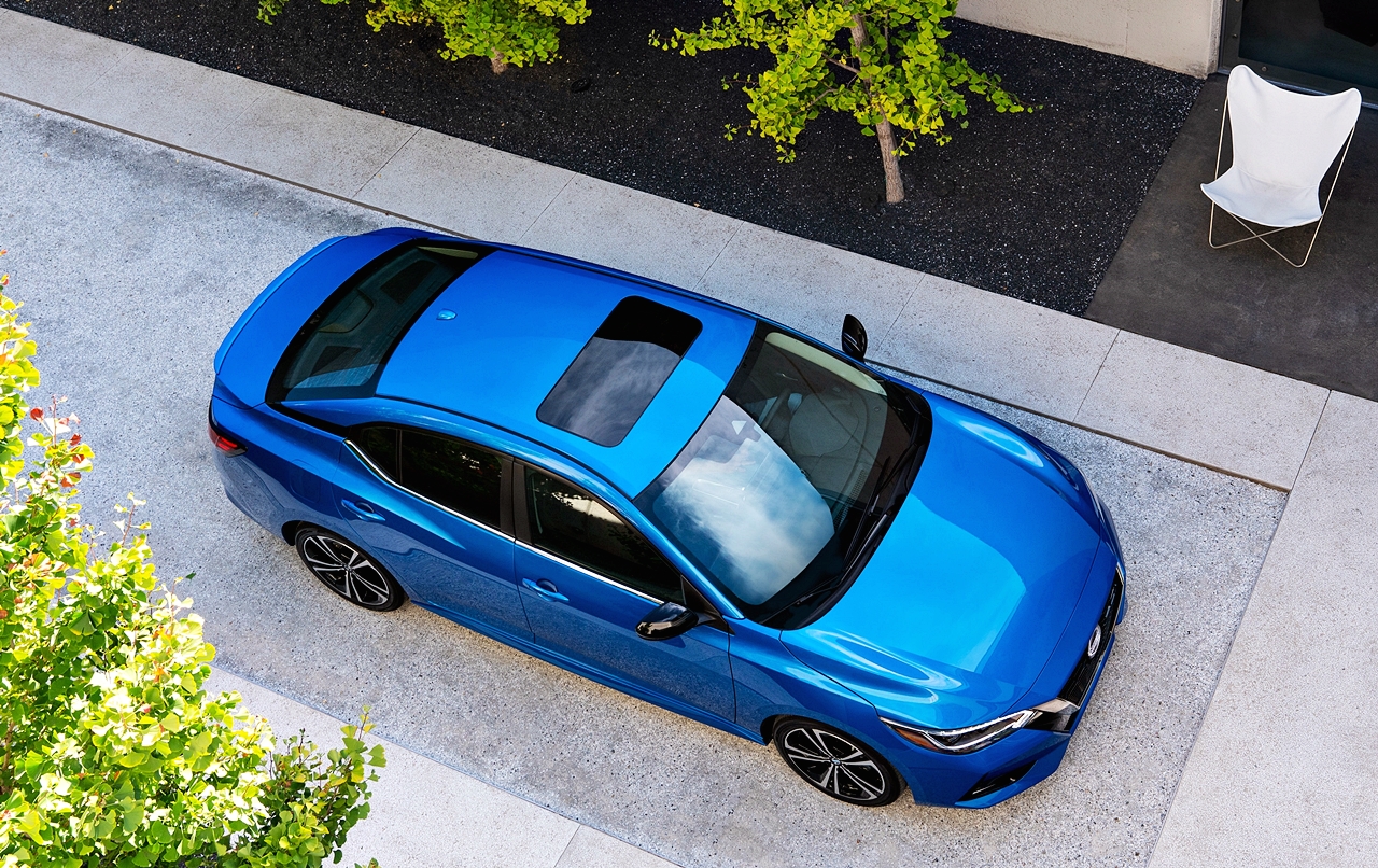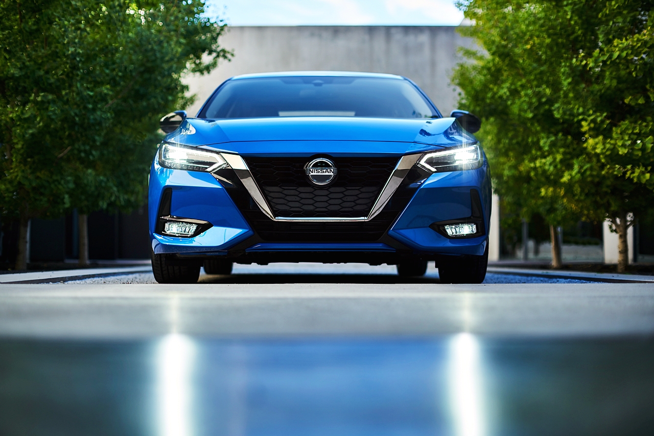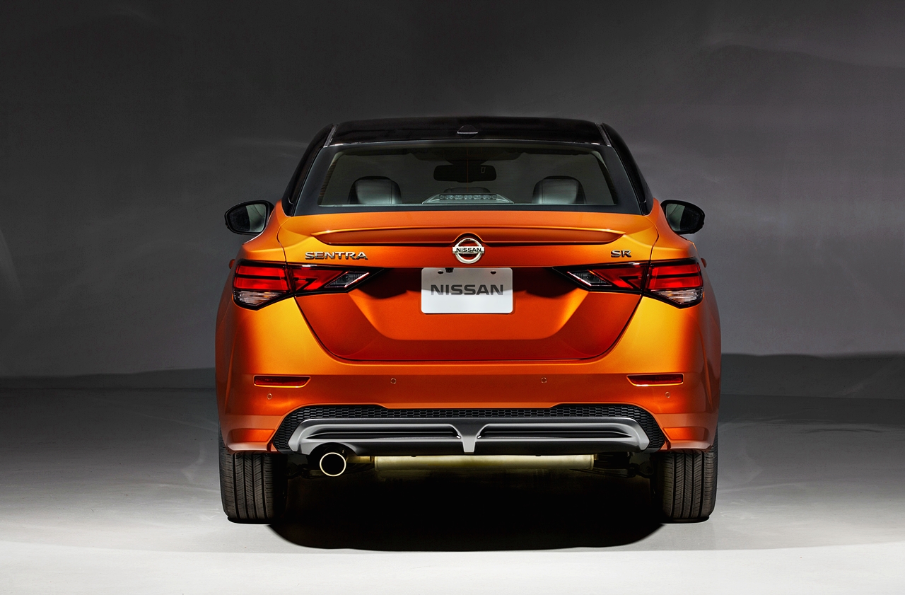 Dimensi Sentra (2020) adalah 2 inci lebih rendah dan 2 inci lebih lebar berbanding model lama. Rekabentuk luaran menggunakan identiti baharu Nissan seperti gril V-motion, lampu LED utama tirus dan bumbung apung menerusi rekaan pilar-C yang melandai ke belakang seperti gaya model fastback.