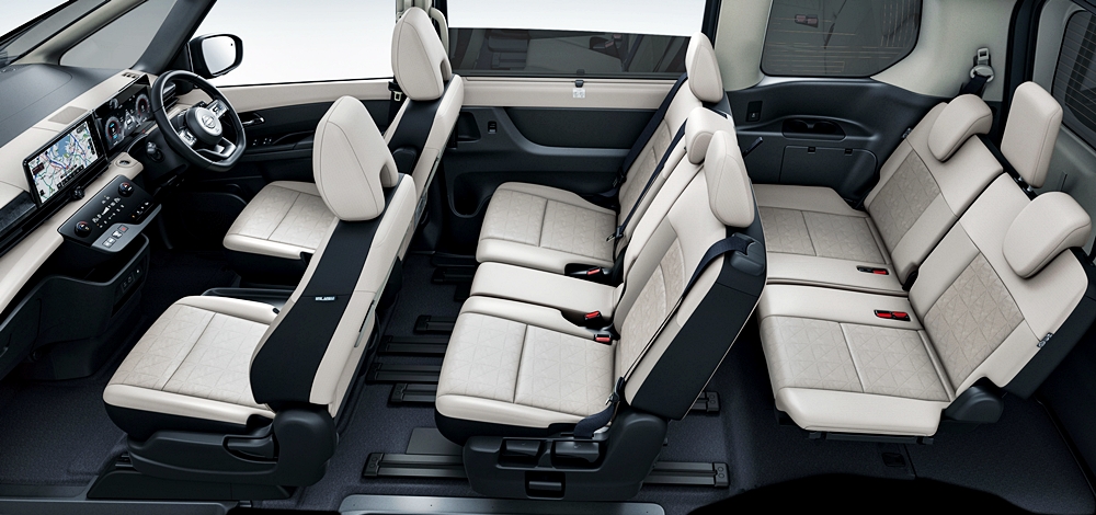 - Kerusi tengah pelbagai guna pada baris kedua untuk tujuh atau lapan penumpang (varian Luxion).