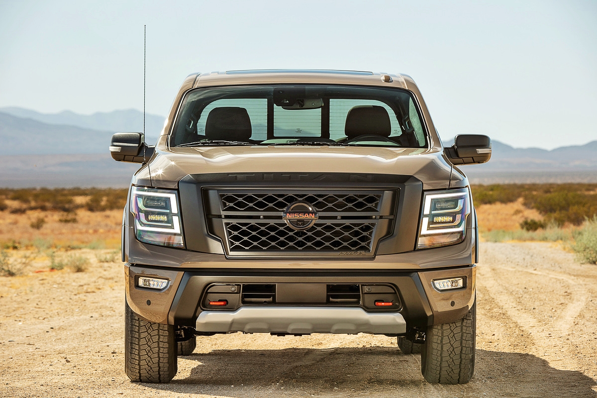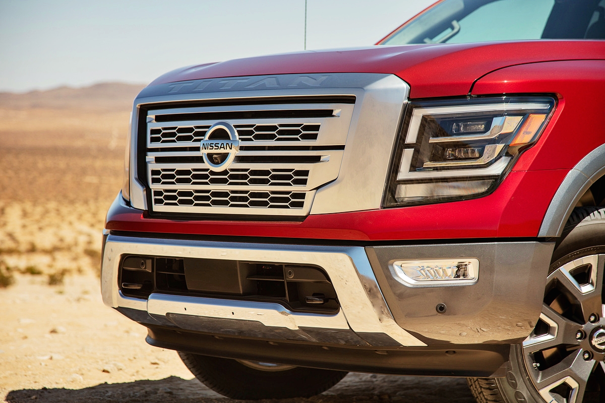 Identiti kontemporari Nissan dapat dilihat pada lampu utama LED dan lampu siang (DRL) LED dalam bentuk dua bilah bumerang. Selain bahagian depan, lampu LED turut digunakan pada ruang kargo dan lampu belakang. Lagi perubahan bahagian luar ialah bampar depan, gril, lampu kabus, rim dan tiga warna baharu. Setiap varian Titan tampil berbeza dengan tiga rekabentuk gril dan lima jenis rim bagi memenuhi cita rasa peribadi pelanggan AS.