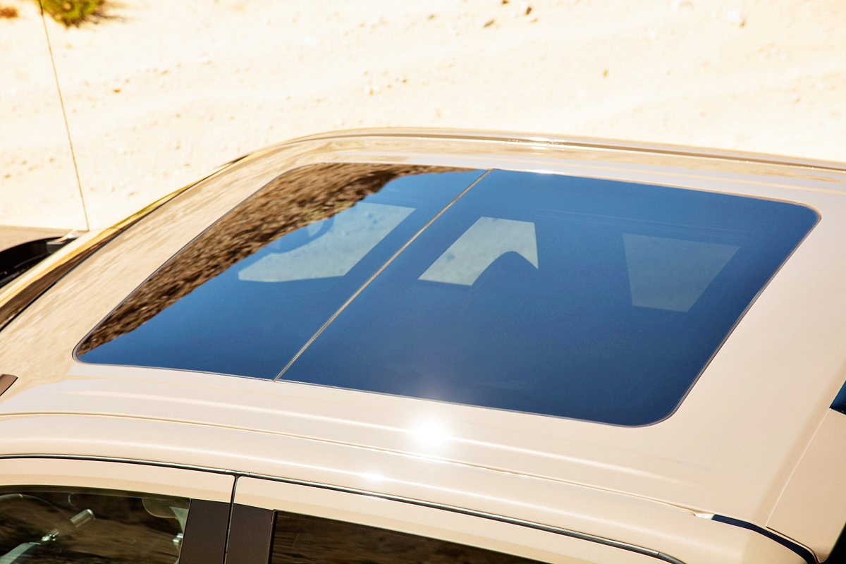 Varian Titan Crew Cab dilengkapi ciri mewah seperti bumbung panoramik dwi panel bersaiz 3 meter persegi yang juga antara saiz terbesar dalam segmen trak pikap.
