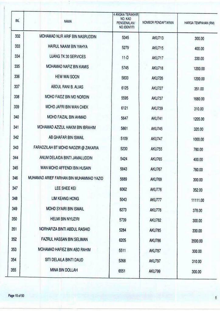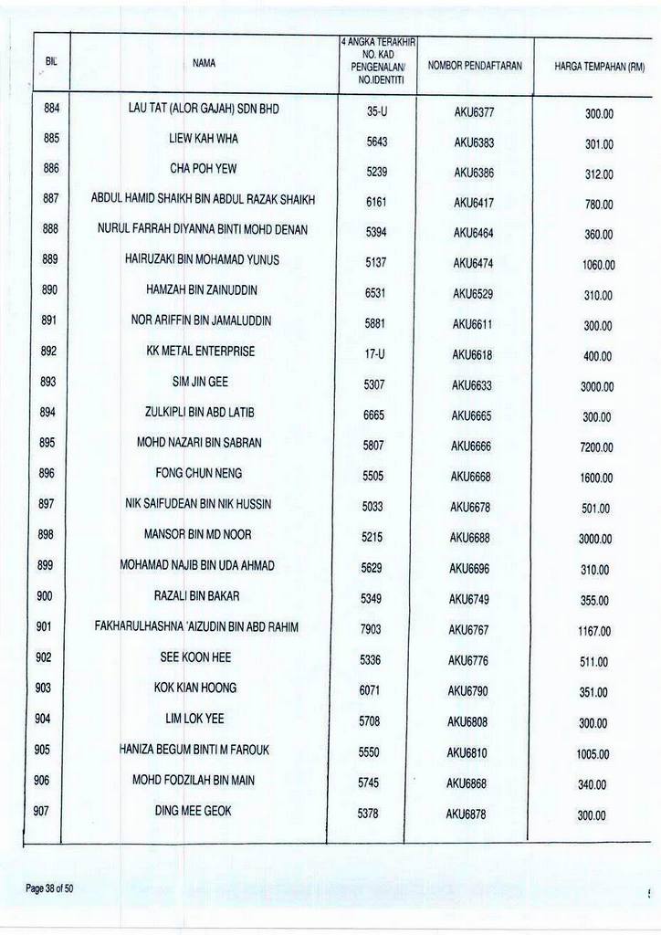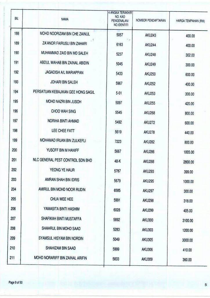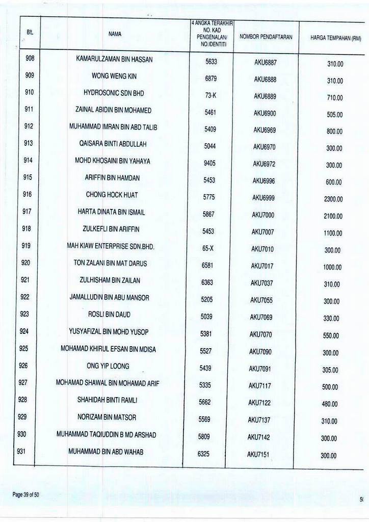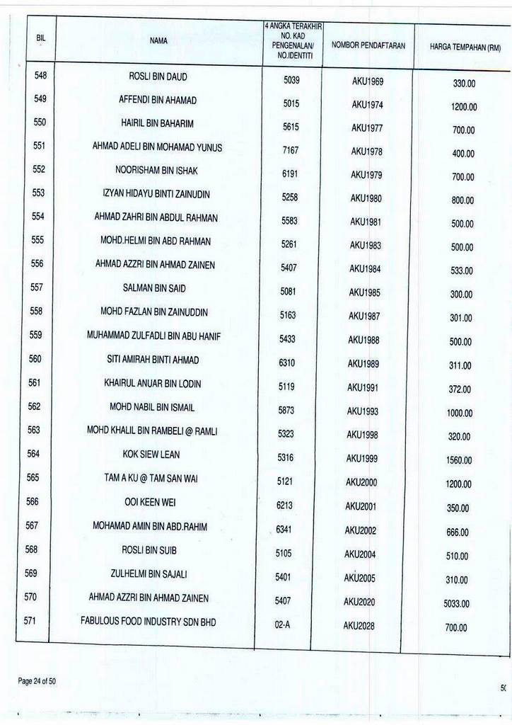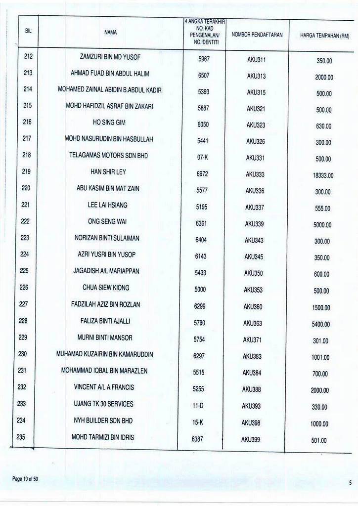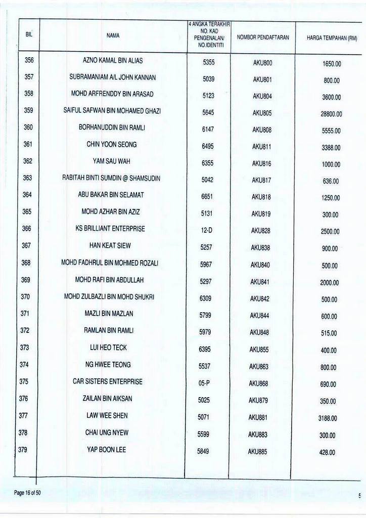 Senarai bidaan bagi nombor pendaftaran AKU boleh rujuk di galeri.