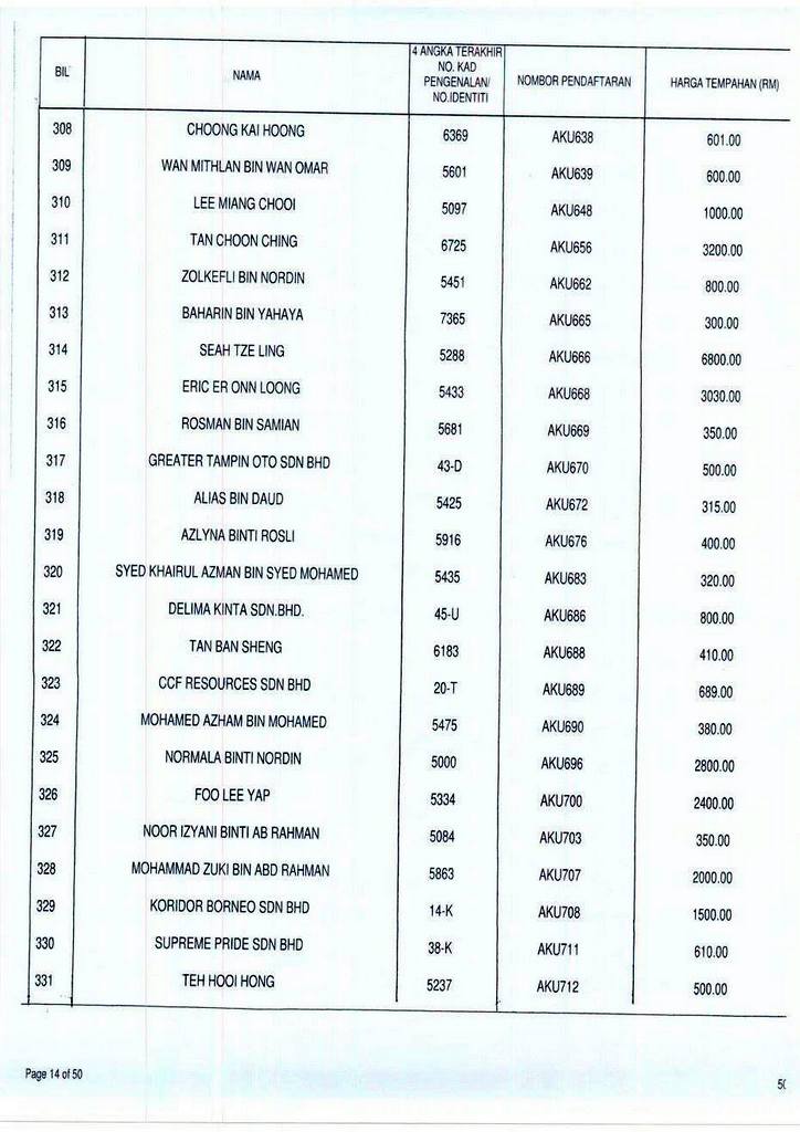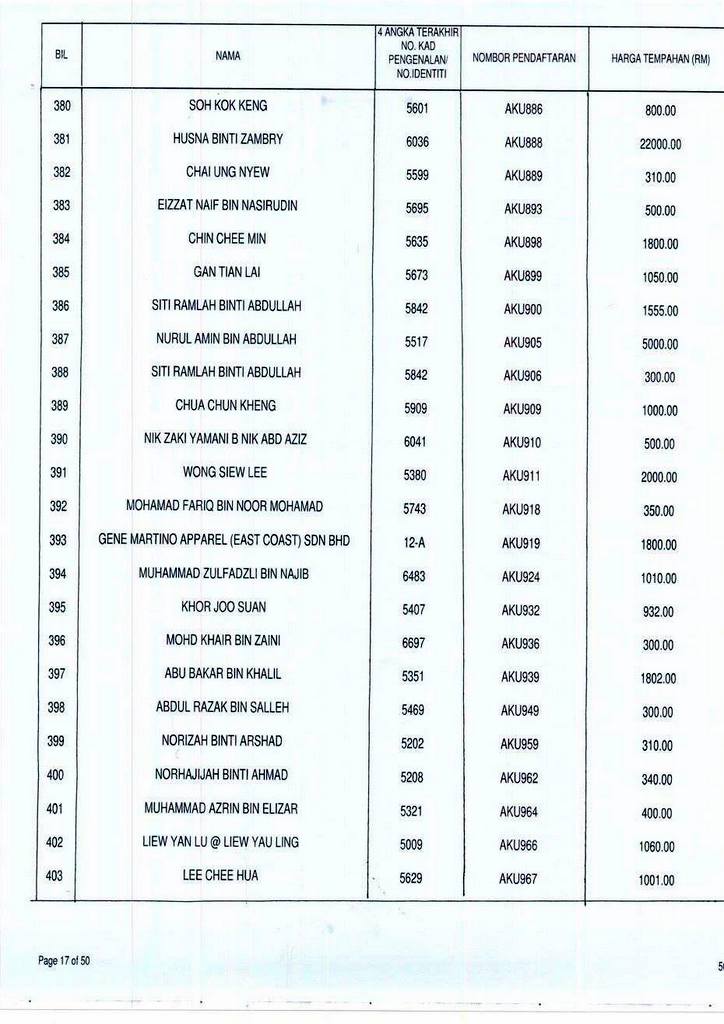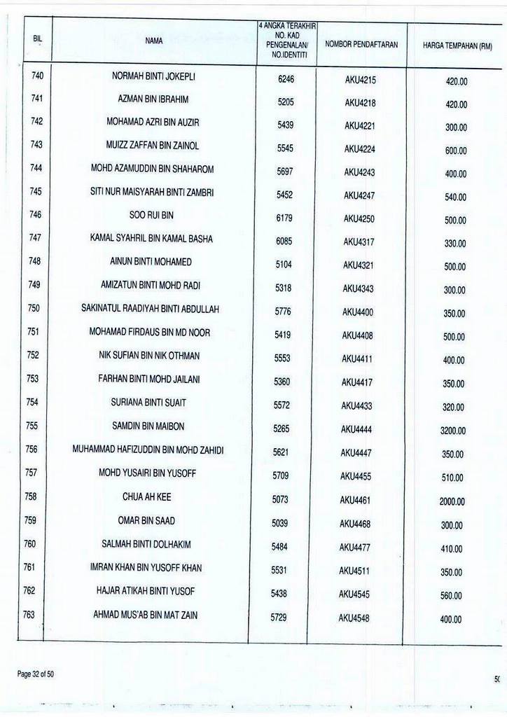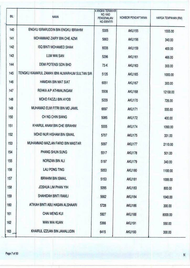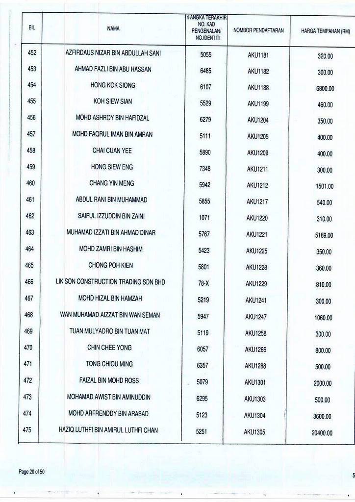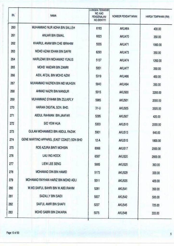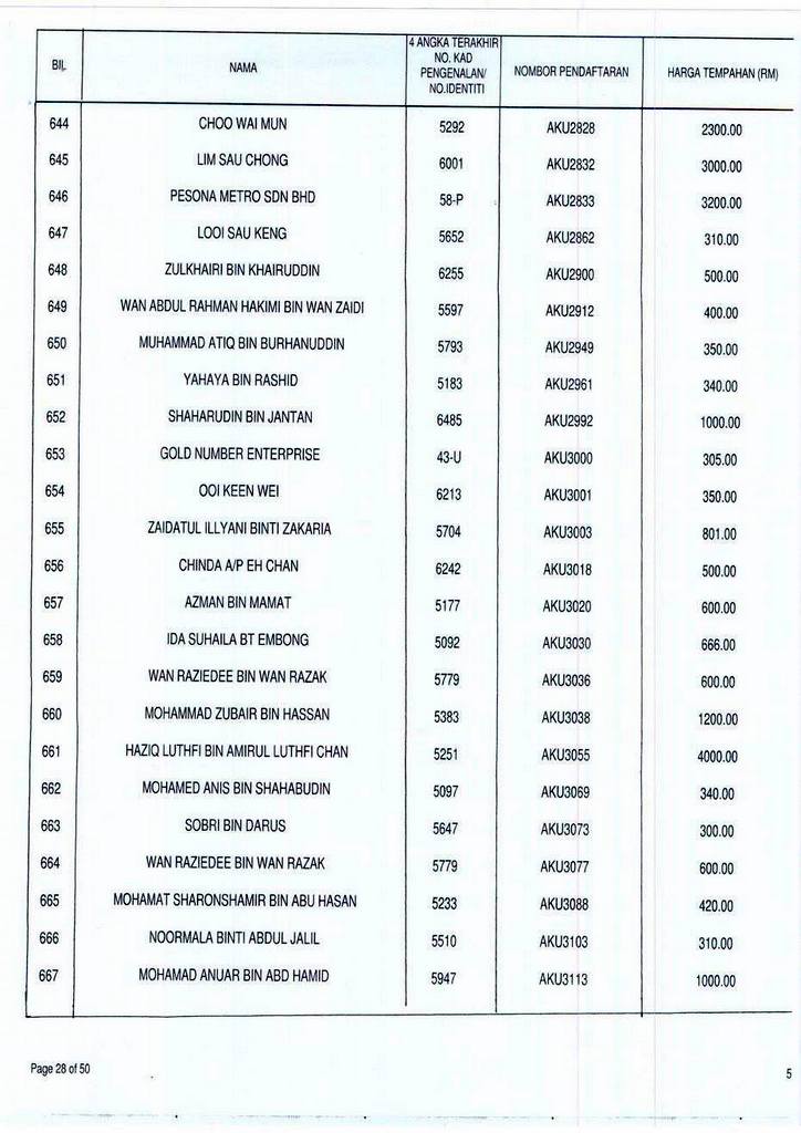 Senarai bidaan bagi nombor pendaftaran AKU boleh rujuk di galeri.