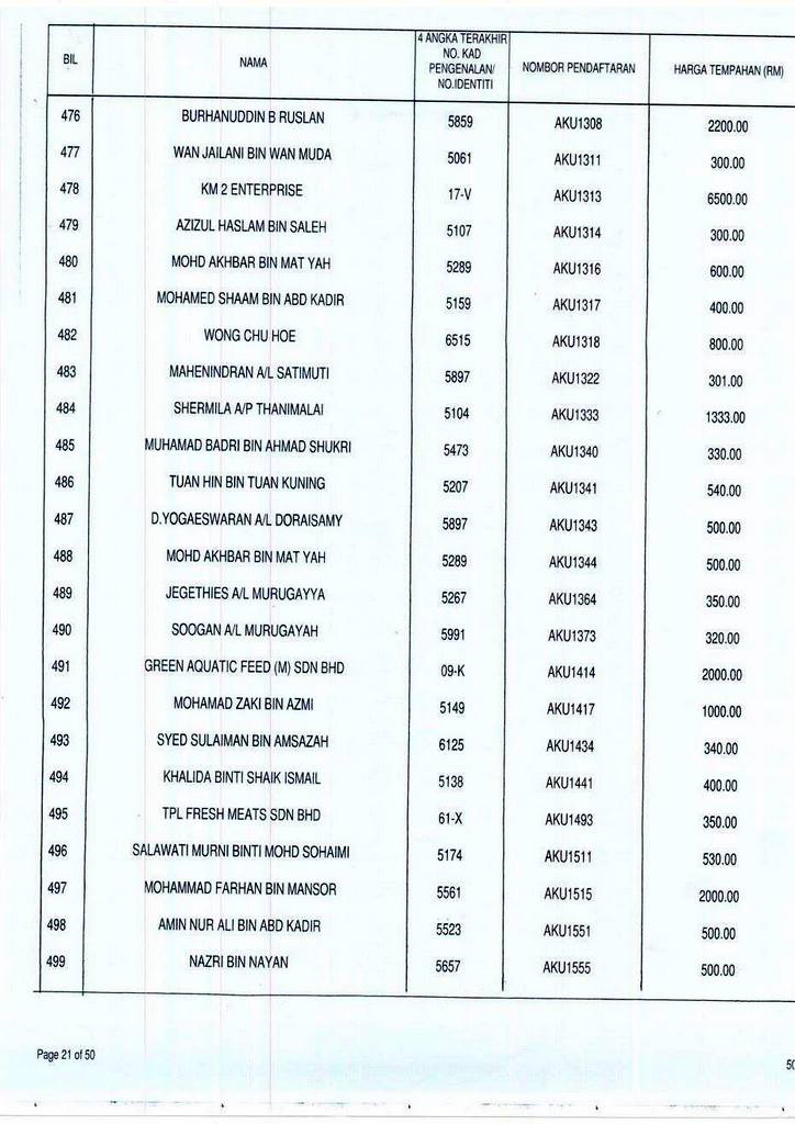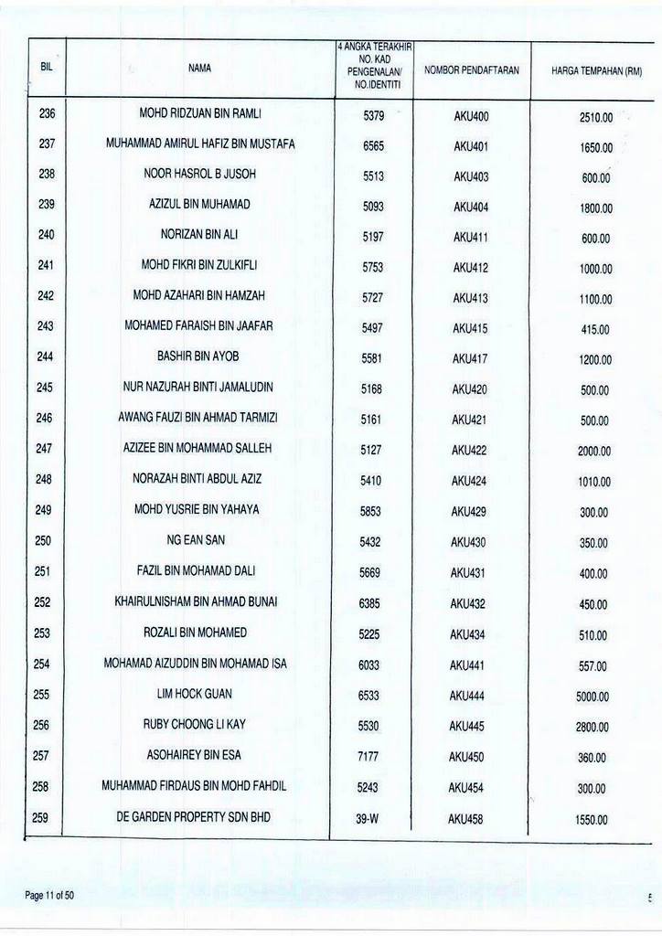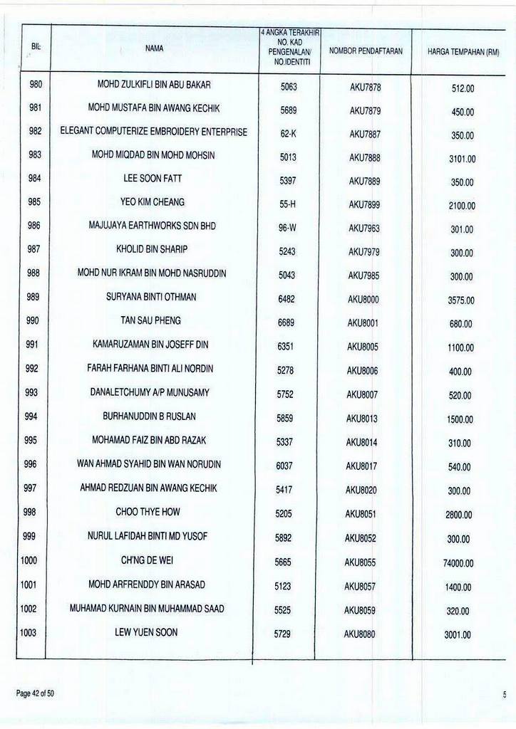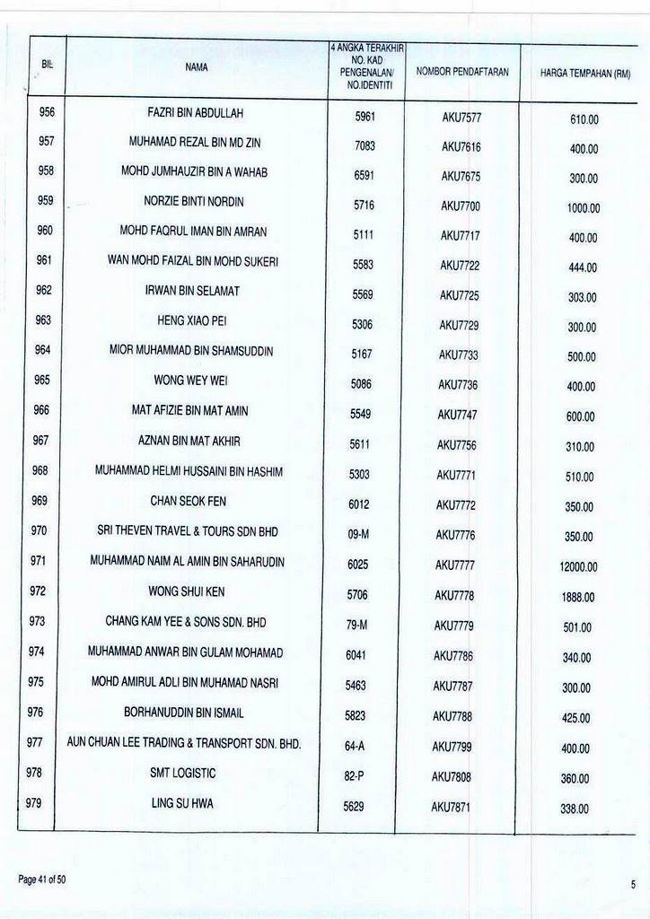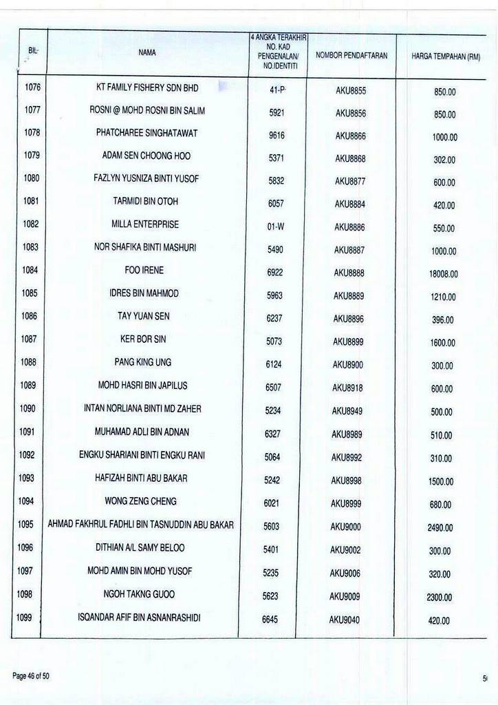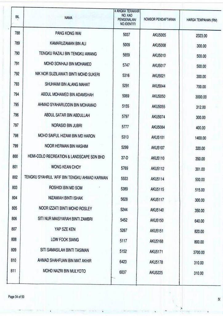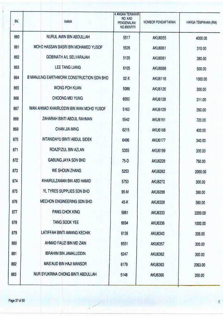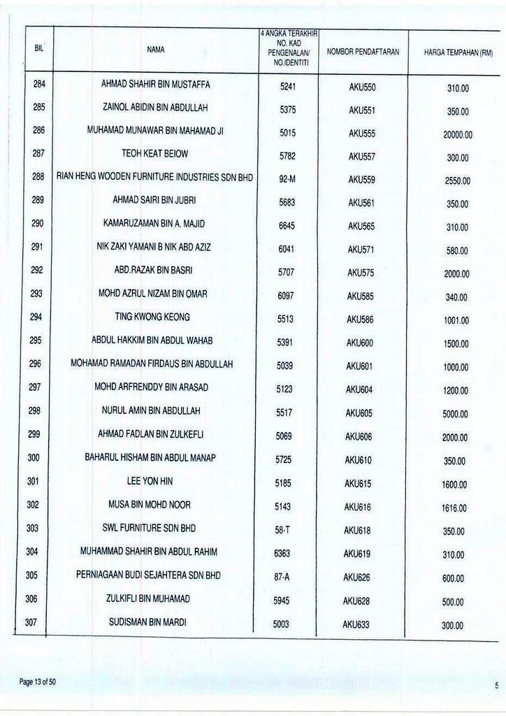 Senarai bidaan bagi nombor pendaftaran AKU boleh rujuk di galeri.