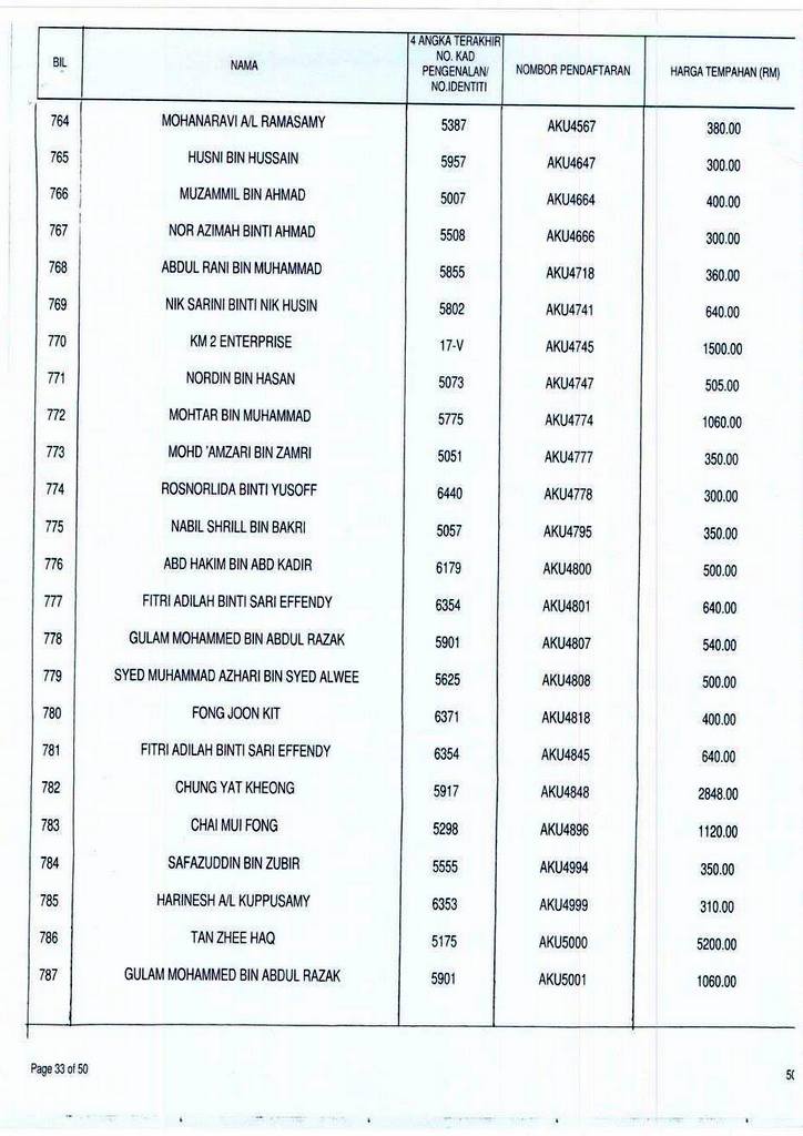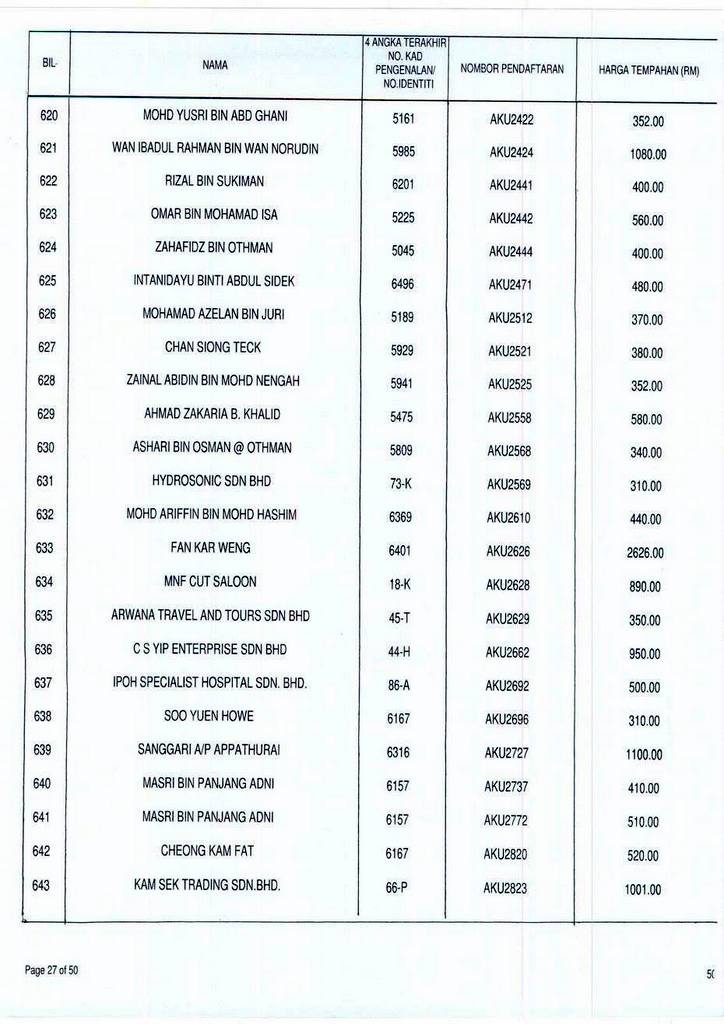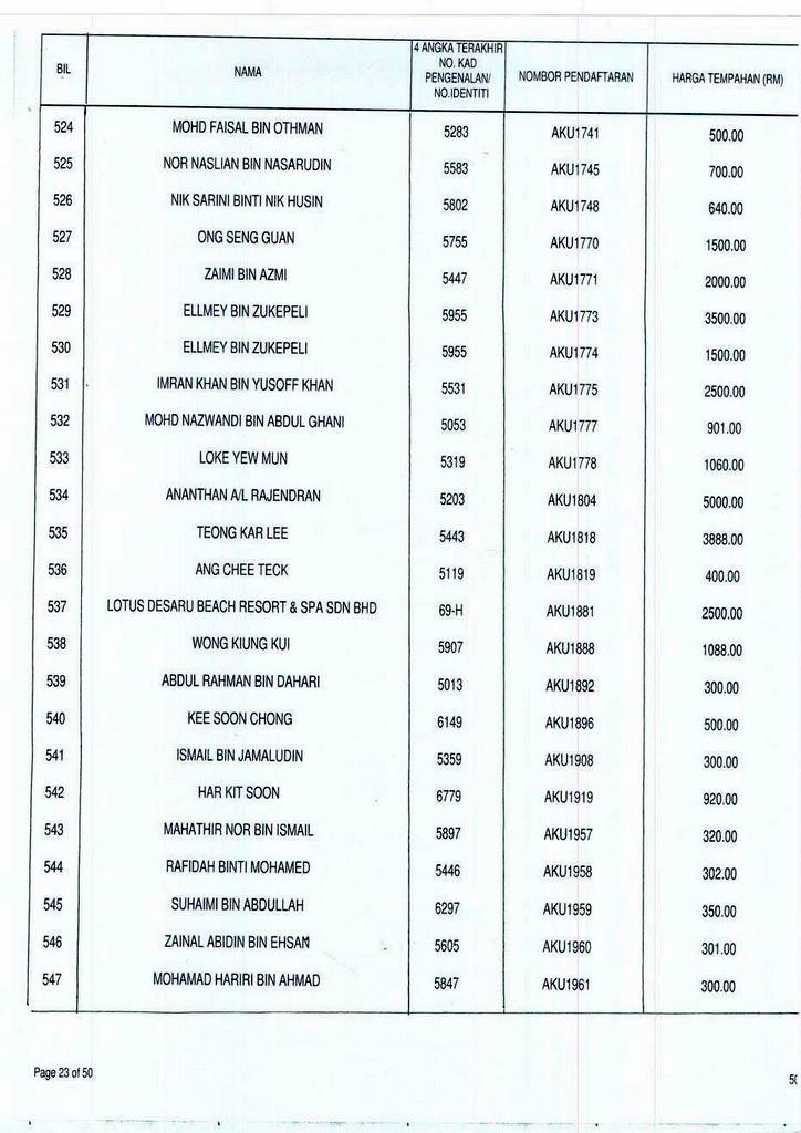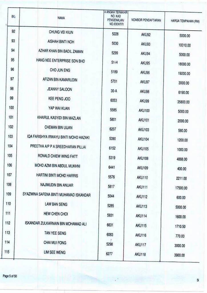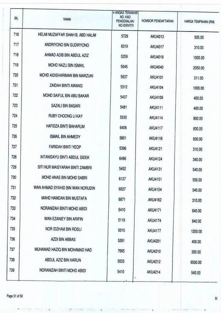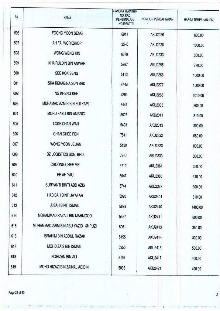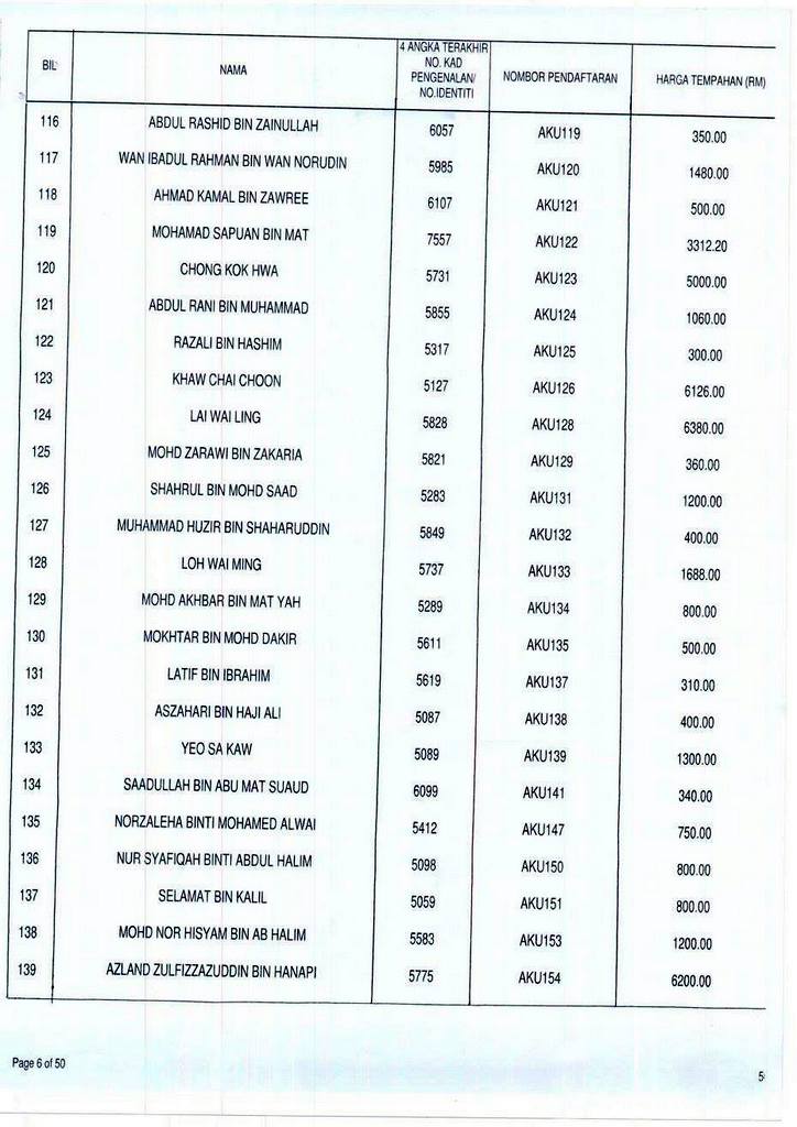 Senarai bidaan bagi nombor pendaftaran AKU boleh rujuk di galeri.