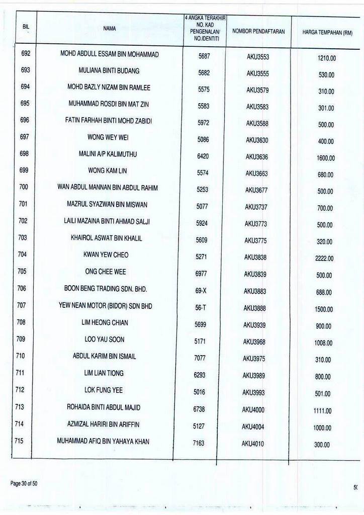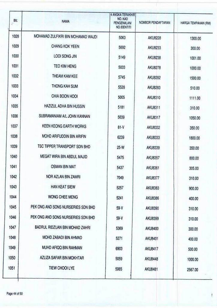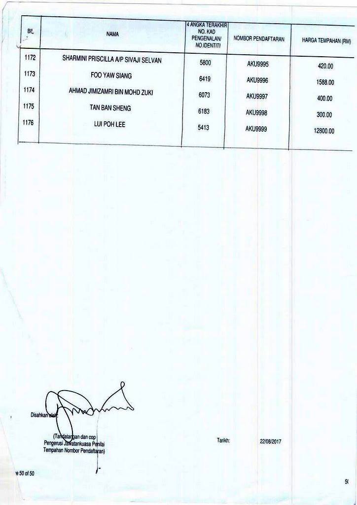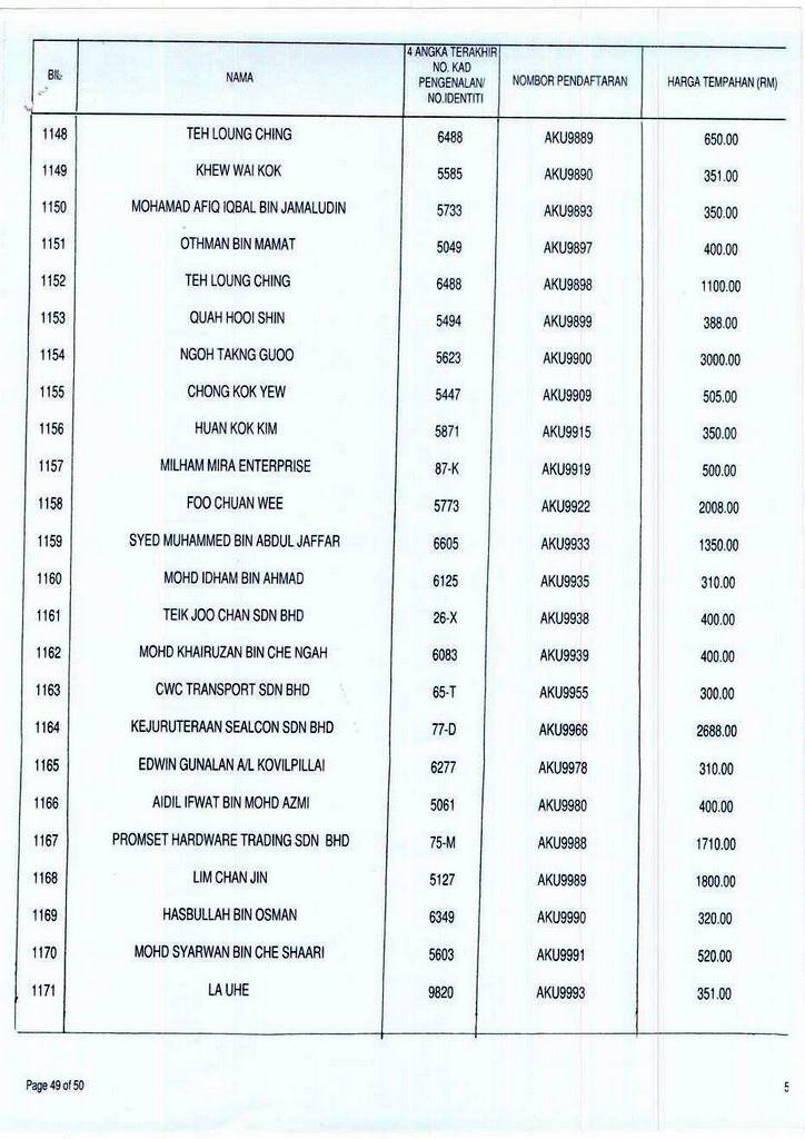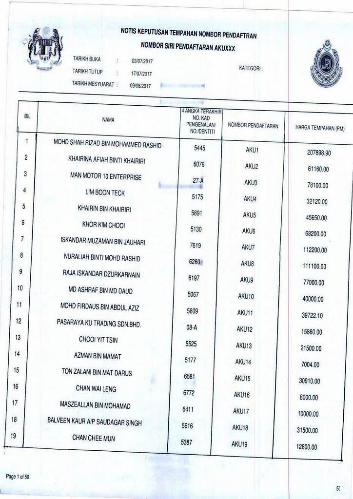 NOMBOR pendaftaran AKU1 menerima bidaan tertinggi iaitu RM207,898.90, manakala nombor pendaftaran pilihan ramai, AKU8055 yang membawa maksud ‘AKUBOSS’ pula menerima bidaan berjumlah RM74,000.