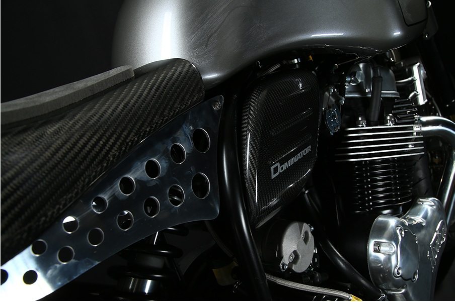 Model cafe racer itu menampilkan casis gaya featherbed dan tangki minyak aluminium buatan tangan yang digabungkan dengan lengan ayun trellis.