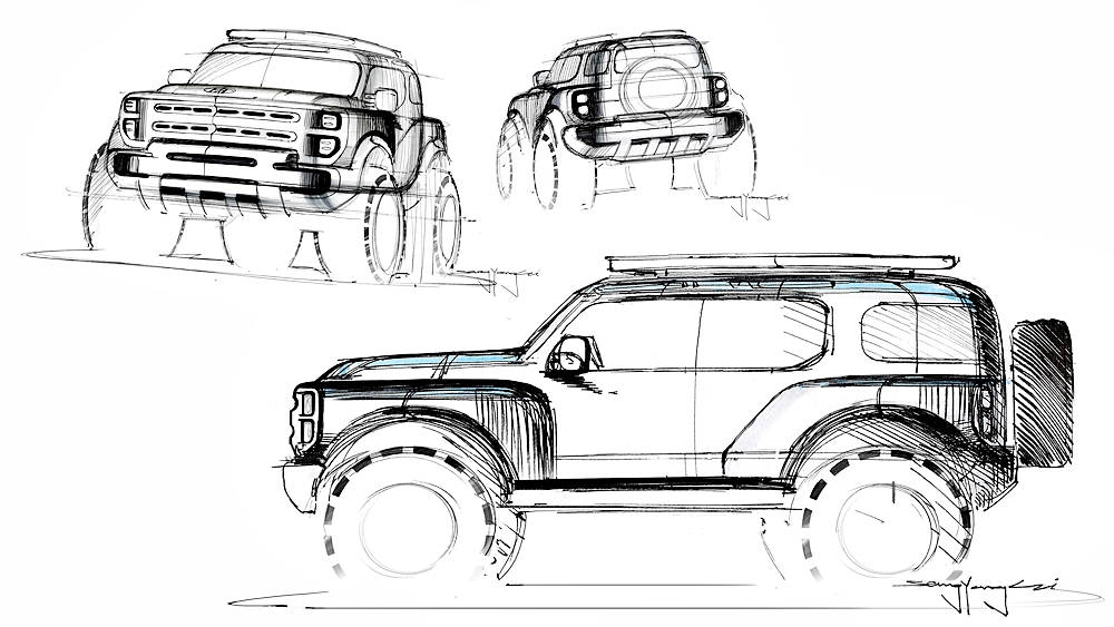 Keseluruhan badan SUV itu disaluti kemasan warna Liquid Titanium (perak). Rekabentuk luarann menampilkan siluet jenis dua kotak tegak dengan struktur bumbung dan tingkap tinggi.
