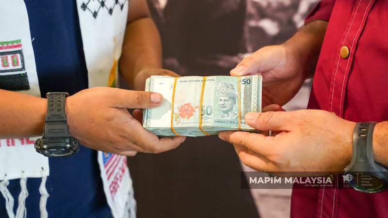 Dia bersama rakan, Bob tiba ke Wisma MAPIM Malaysia sekitar jam 11 pagi ini untuk menyerah hasil jualan bagi membantu rakyat Palestin yang semakin menderita saban hari.