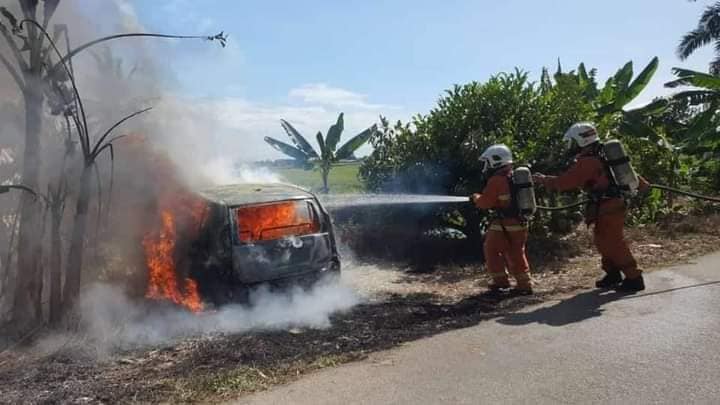 Pemilik Myvi itu dikatakan cuba memadamkan api menggunakan alat pemadam api, tetapi masih gagal sebelum menghubungi bomba.