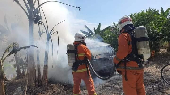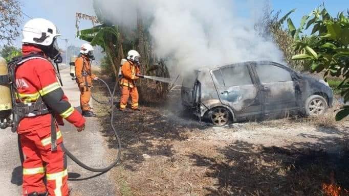 Pemilik Myvi itu dikatakan cuba memadamkan api menggunakan alat pemadam api, tetapi masih gagal sebelum menghubungi bomba.