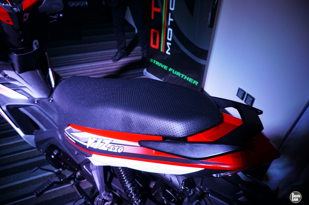 Ruang simpanan u-box bawah pelana mampu memuatkan barangan peribadi pengguna. Paparan meter kelajuan analog direka ringkas dan mudah dibaca. Aspek keselamatan VIZ110 dilengkapi kunci utama dengan penutup magnetik dan sistem anti-kunci.