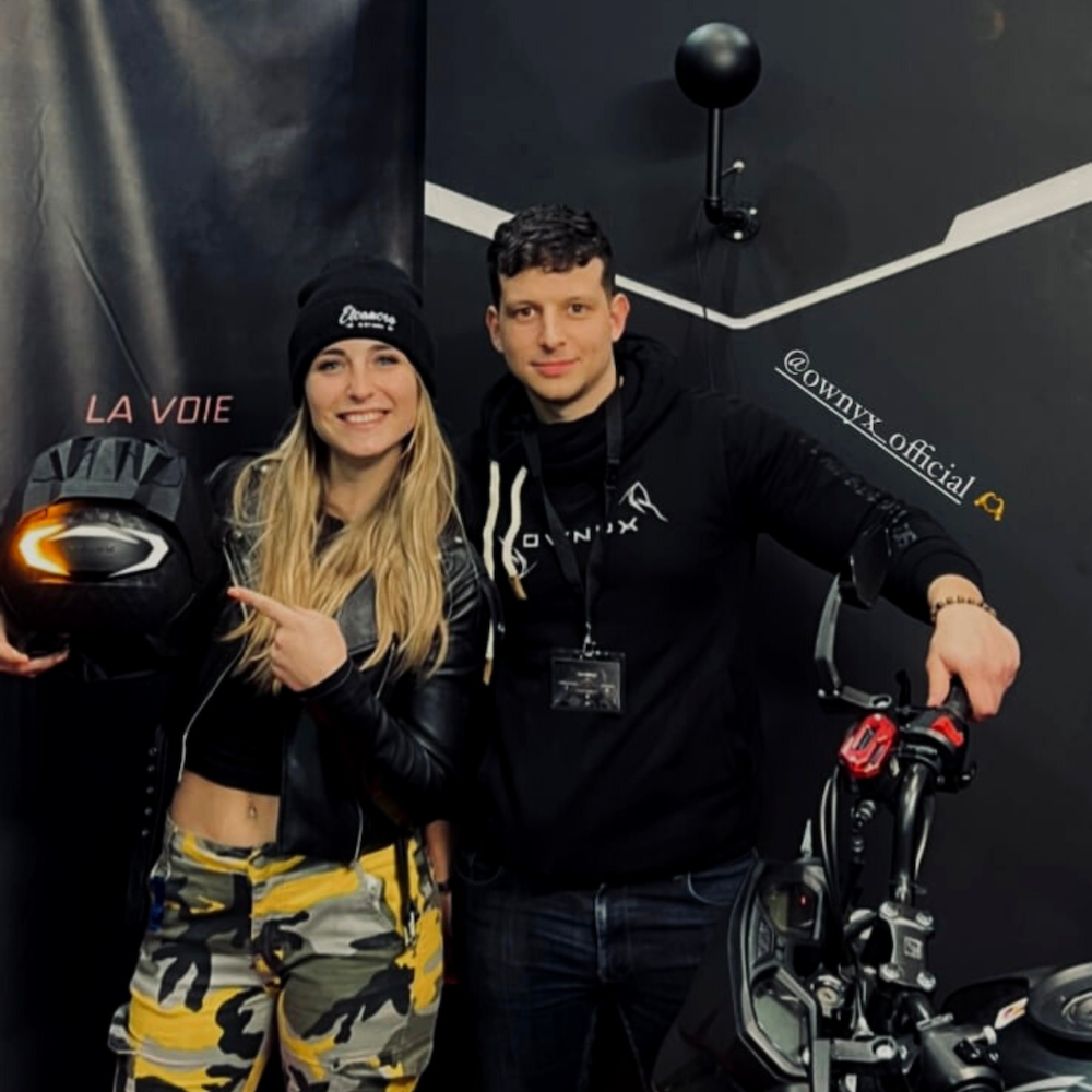 FIRMA pemula (start-up) Perancis, OWNYX menghasilkan aksesori pencahayaan tambahan untuk dipasang pada helmet penunggang motosikal, dipanggil peranti amaran MRA.