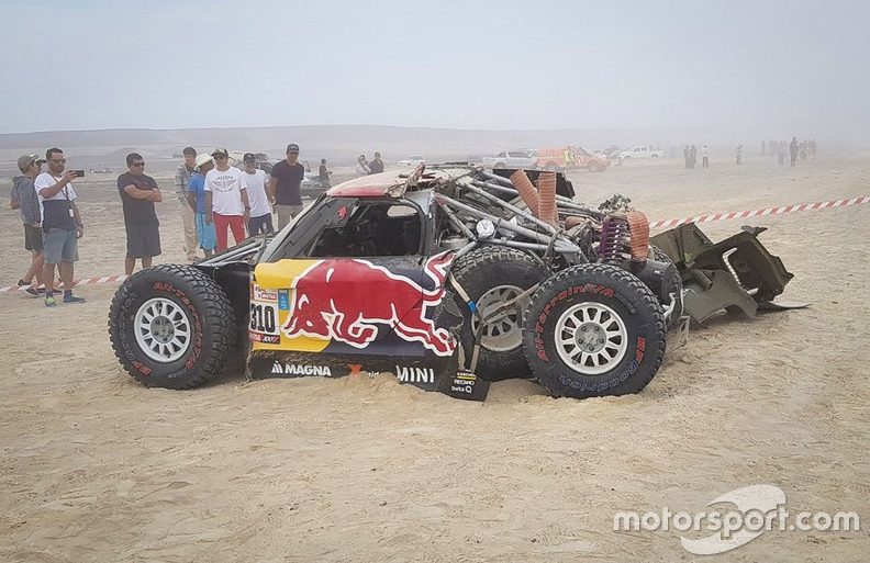 PESERTA rookie Dakar 2018 dari Amerika Syarikat (AS), Bryce Menzies dan rakan pelumba, Peter Mortensen perlu mengakui cabaran perlumbaan kali ini di Pisco dalam daerah Ica, Peru begitu kejam apabila terpaksa melupakan saingan peringkat kedua berikutan jentera Mini John Cooper Works Buggy (nombor 310) yang dipandu Menzies hancur selepas tergolek beberapa kali.