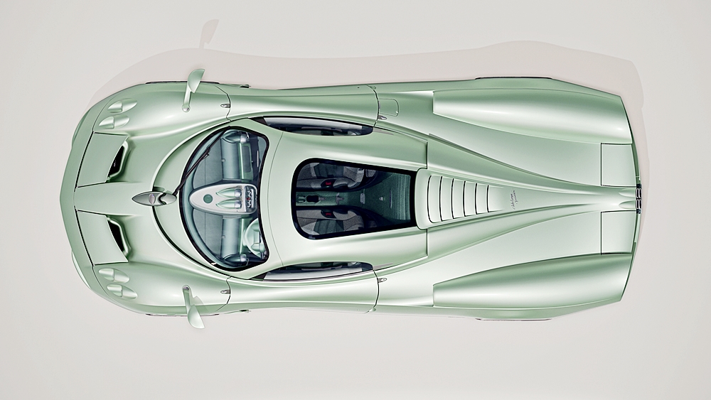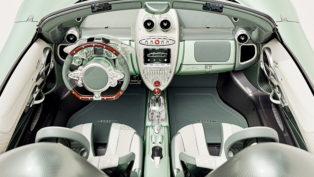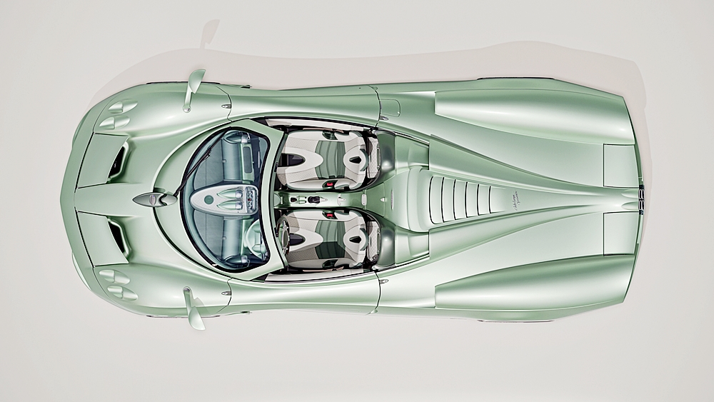 Model itu tampak unik berbanding Pagani bumbung terbuka lain yang bermula dengan penggunaan struktur monokok serba baharu.