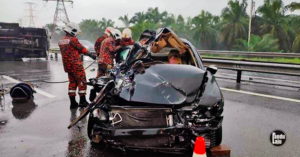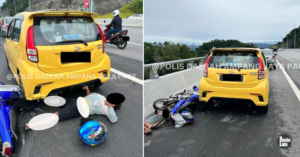 Nahas Pertama Lebuhraya SUKE, Motor Langgar ‘King’ Berhenti di Lorong Kecemasan