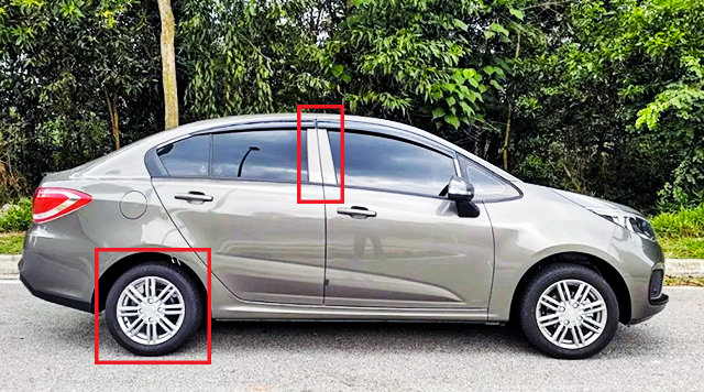 - Rim aloi 15 inci mempunyai rekaan sama seperti varian Premium, tetapi cuma satu tona warna, sama seperti varian Executive