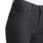 Steel Black 0.2 adalah jeans satu lapisan jenis slim-fit yang dibuat daripada denim mudah regang dengan 25 peratus Dyneema, poket perisai pinggul, dan poket perisai lutut dua posisi. Model ini tiada kelim di depan dan berwarna hitam legam.