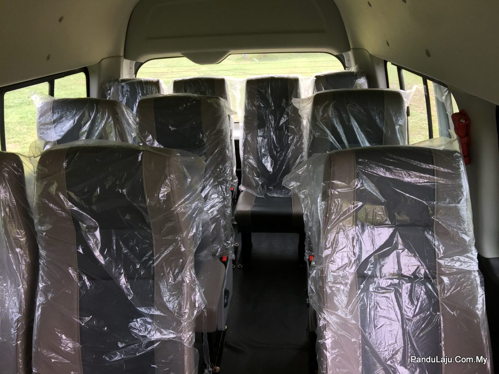 Bahagian kabin van menjanjikan tahap keselesaan yang baik, di mana semua tempat duduk dibaluti kulit, manakala bahagian lantai ditutupi karpet PVC. Sangat praktikal untuk sebuah kenderaan yang memuatkan 16 penumpang pelbagai ragam. Jadi, tidak perlu mengeluh jika ada kanak-kanak yang tertumpah minuman. Cuma ambil kain dan lap.
