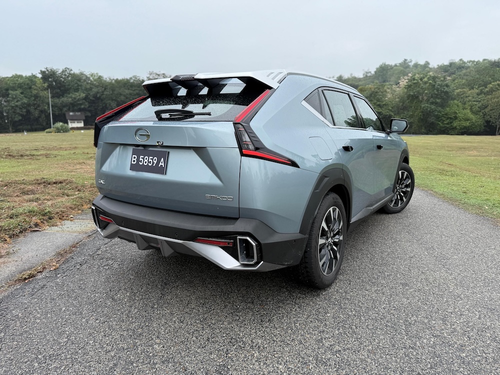 GAC Emkoo menampilkan bahasa rekabentuk mecha design dengan lampu depan Matrix-style yang menyerlahkan identiti moden. Dari sisi kelihatan rim aloi 19 inci dwi-tona dan garis badan maskular yang menyerlahkan imej sporty.