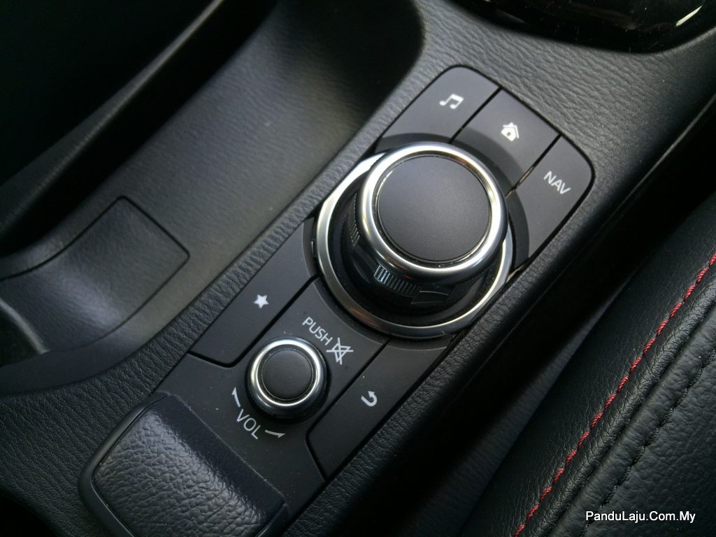 Konsol tengah didatangkan bersama sistem audio MZD Connet dengan skrin sentuh 7-inci yang memaparkan pelbagai info pemanduan.