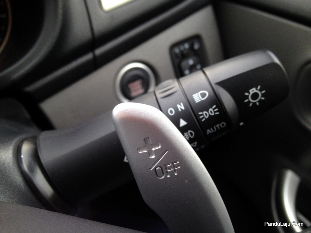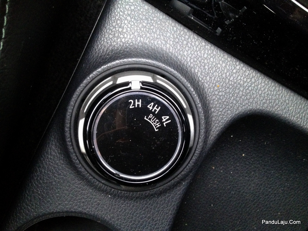 Butang kawalan pacuan empat roda (4WD) dan dua roda (2WD) digabungkan bersama sistem Easy Select 4WD Mitsubishi terletak di sebelah gear.