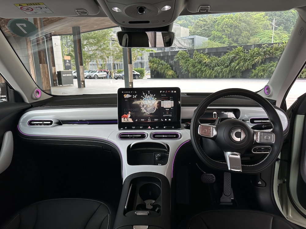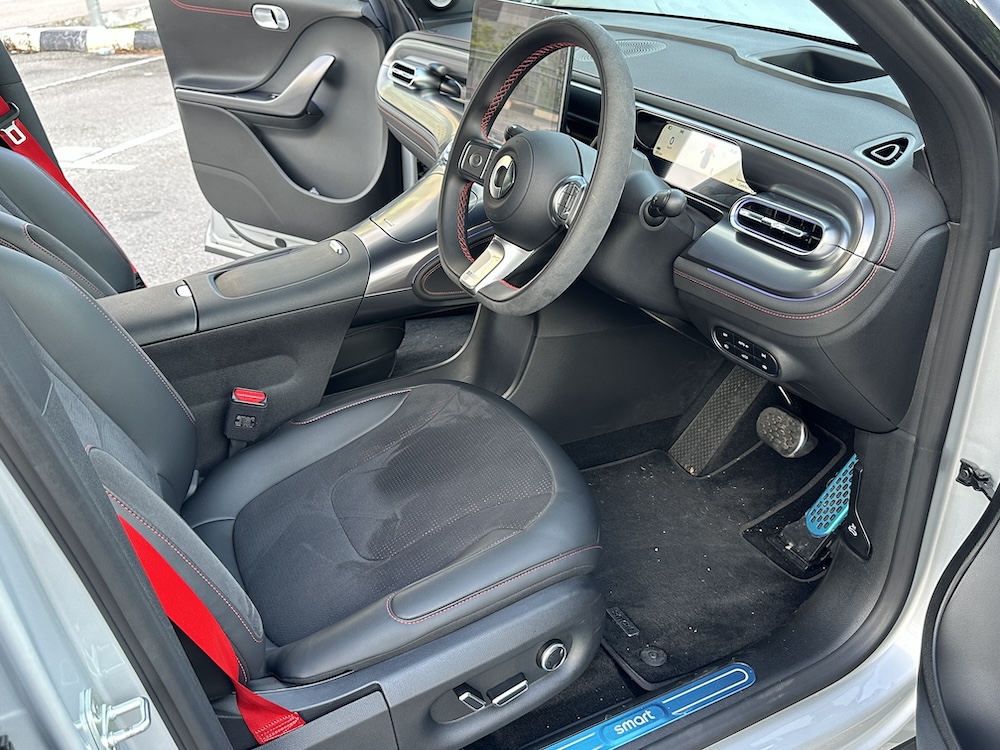 Ketika memandu ke Hotel Angsana, smart #1 BRABUS menjanjikan keselesaan terbaik untuk pemandu dan setiap penumpang menerusi kerusi balutan Alcantara, ergonomik tempat duduk yang mengurangkan rasa lenguh dan tidak selesa, ruang kaki mencukupi dan kabin senyap walaupun kereta menggunakan dua jenama tayar berbeza.
