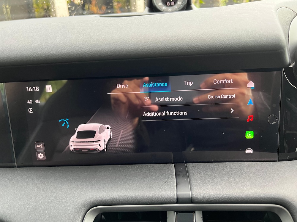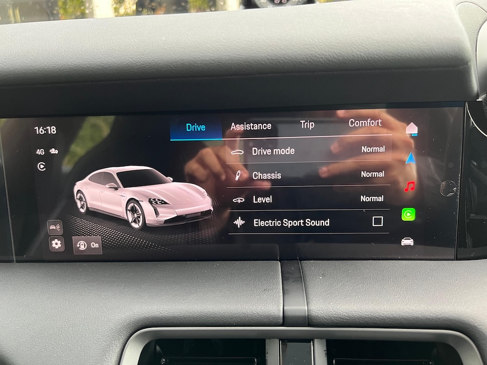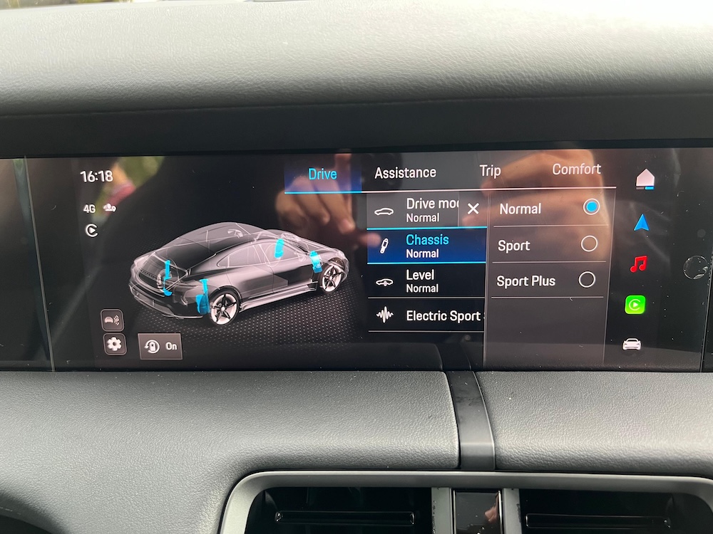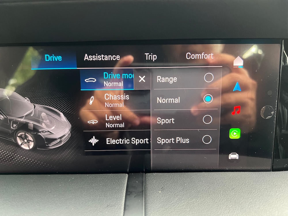 Ada empat pilihan mod pandu Porsche Taycan 4S, iaitu Range, Normal, Sport, dan Sport Plus. Sepanjang perjalanan dari KL ke Gambang, kami hanya mengaktifkan mod pandu Sport Plus bagi memastikan tahap pemanduan kekal berkualiti dan berprestasi tinggi.