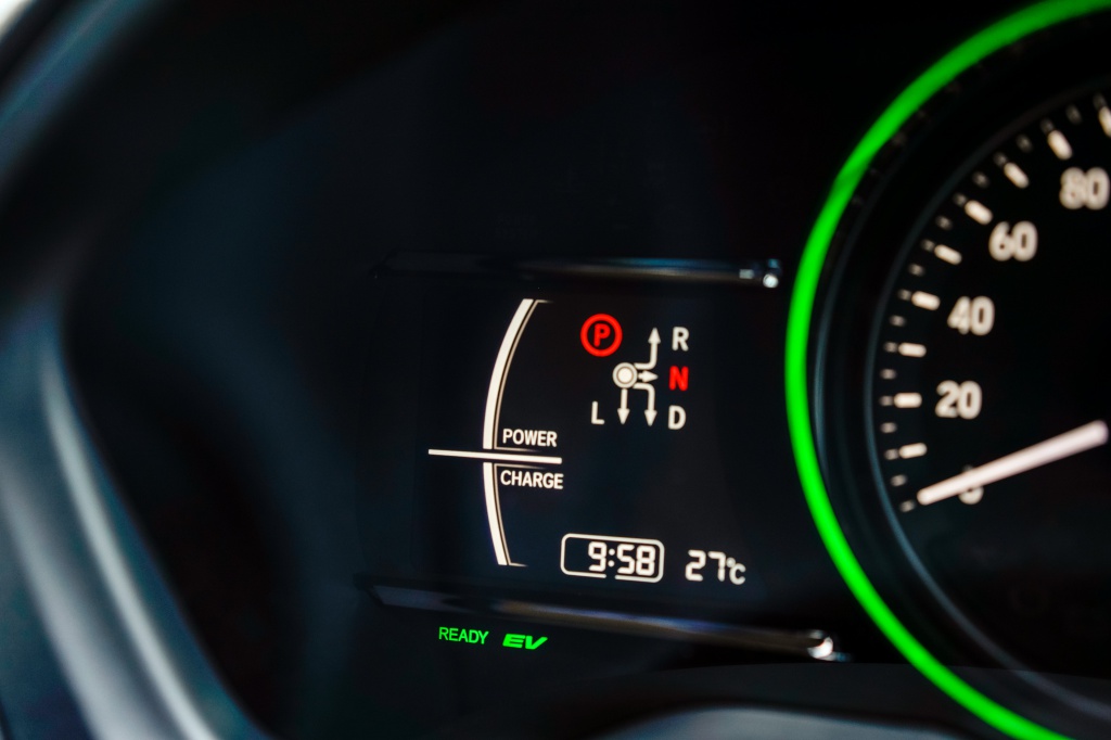 Dalam kabin hanya terdengar deruan kipas penyaman udara kerana tentunya ketika enjin dihidupkan kereta hibrid cuma menjana motor elektrik sebelum trenkuasa utama diambil alih enjin pembakaran dalaman. Warna hitam mendominasi ruan kabin dengan kombinasi kemasan semi kulit untuk upholsteri dan tombol gear kecil di konsol tengah. Inilah perbezaan paling ketara antara model hibrid dan varian HR-V lain.