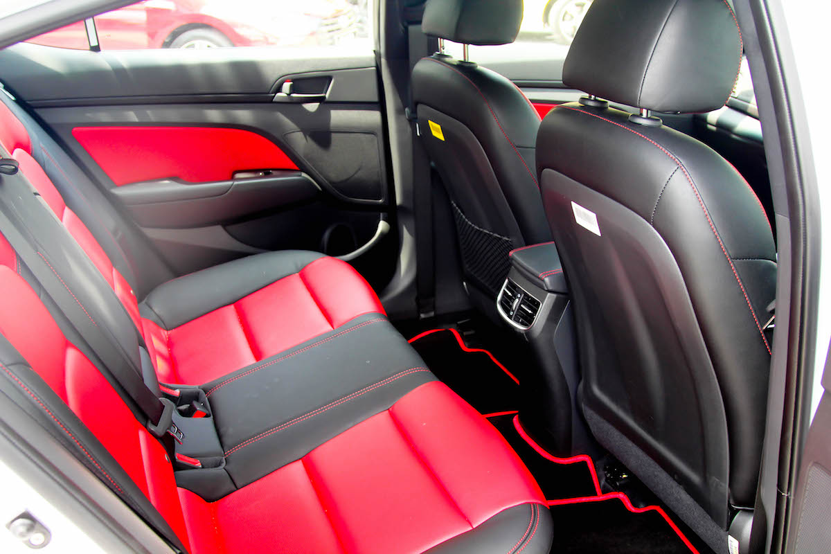 Selain daripada warna yang ‘terlebih sudah’, kualiti dan fiil dalaman Elantra 2.0L dan 1.6L adalah menepati kualiti pesaing lain dalam kelas sama dalam aspek material dan ciri kabin moden. Ventilator penyaman udara tambahan turut disediakan buat penumpang belakang di belakang konsol tengah. Kekurangan, tiada soket 12V atau port USB disediakan untuk orang belakang.