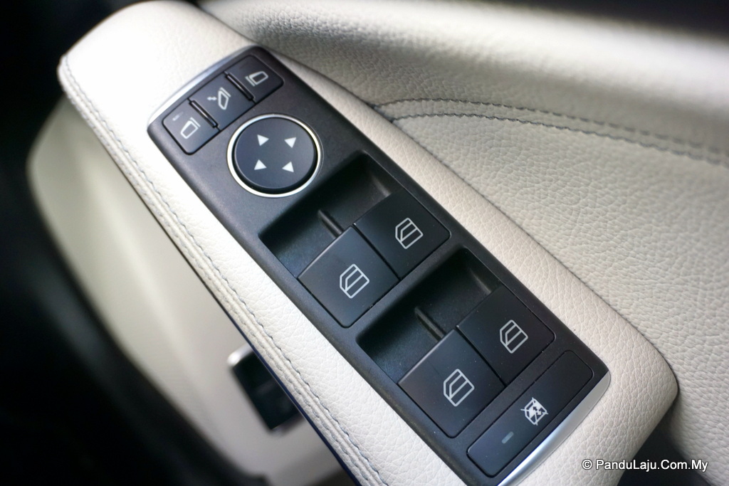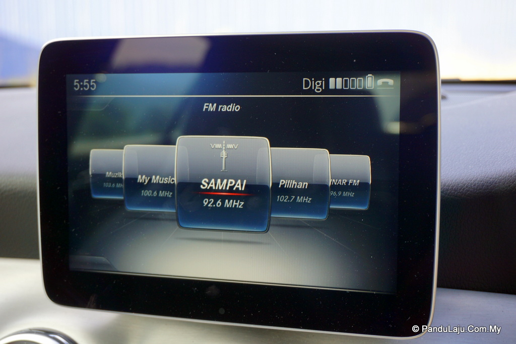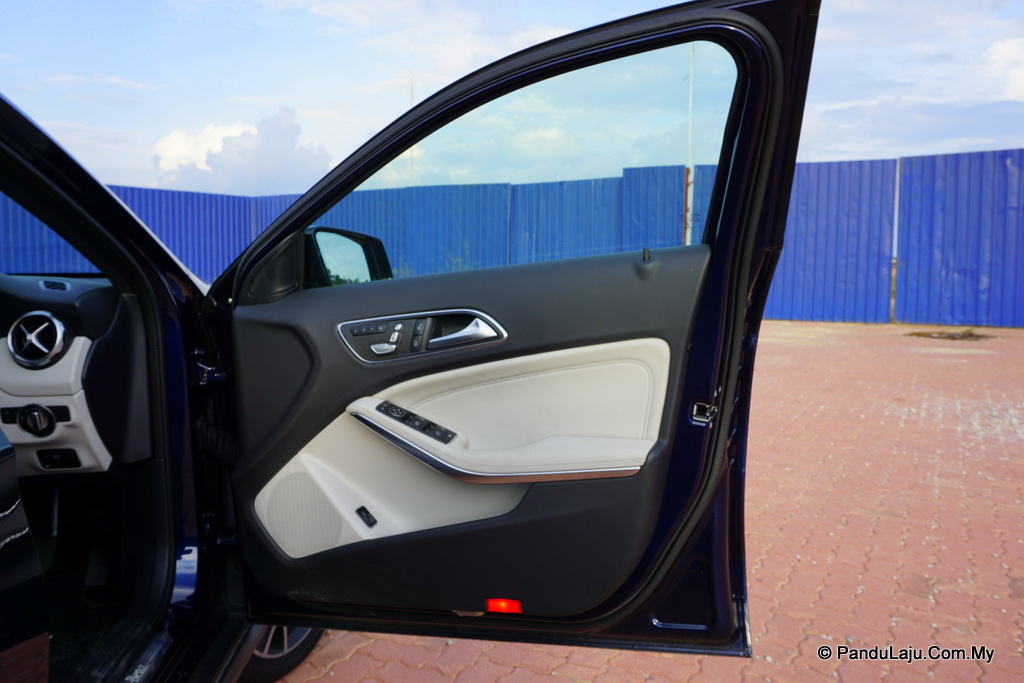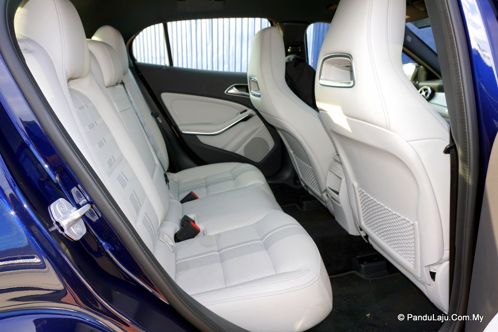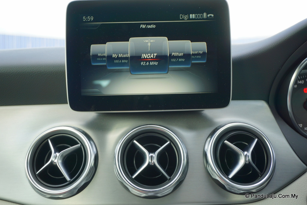 Apa yang lebih menarik perhatian saya adalah pada bahagian dalam kabin. Apabila tiba waktu malam, kesemua kerusi berbalut fabrik itu akan ditemani dengan cahaya lampu berwarna. Secara tidak langsung menjadikan Mercedes GLA 200 ini tampak eksklusif.