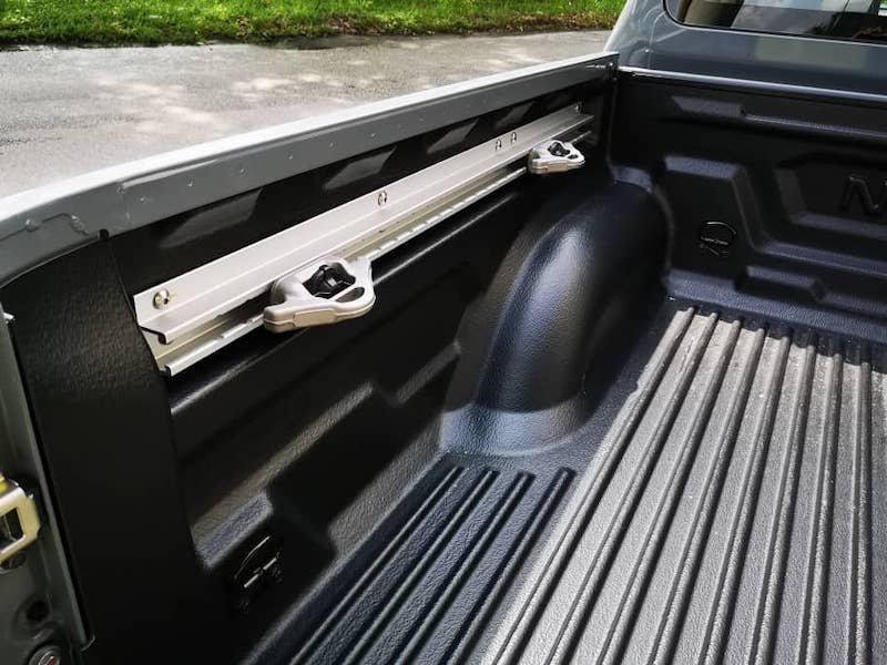 - Ada aksesori tambahan untuk mengikat kargo di lantai but belakang. Sistem C-Channel atau trek utiliti ini dipercayai dibuat daripada material aluminium dan ada fungsi laras. Bampar belakang disatukan dengan tempat pemijik. Ciri Tailgate Assist memudahkan pintu but dibuka atau ditutup kerana tidak berat.