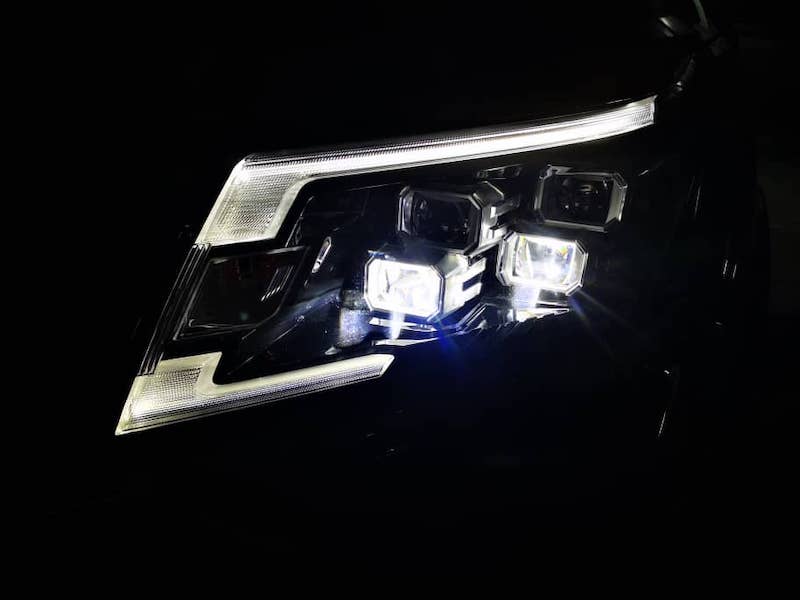 - Menggunakan set lampu utama kuad projektor LED yang memberikan tahap kecerahan suluhan yang lebih terang. Juga ada lampu siang (DRL) bentuk C, manakala lampu kabus dan lampu belakang juga jenis LED.