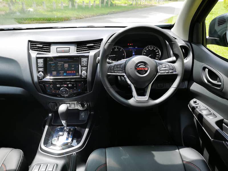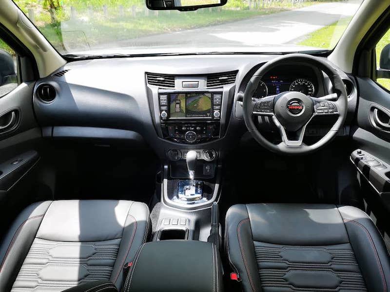 - Ruang kabin mirip generasi Navara sebelum ini, tetapi ada sedikit kelainan untuk Navara Pro-4X, iaitu kemasan stereng dan balutan kerusi. Stereng dihiasi banyak butang kawalan untuk akses pelbagai tetapan. Fiil pengendalian Navara terasa seakan memandu sedan, cuma saiz lebih tinggi dan besar.