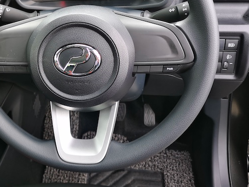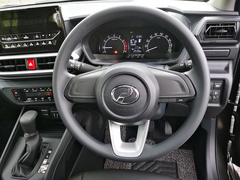 - Stereng menawarkan tindak balas ringan ketika memandu. Cuma nampak ‘bogel’ kerana ada satu butang saja, iaitu PWR di sudut kanan stereng. Memang macam basic car betul.
