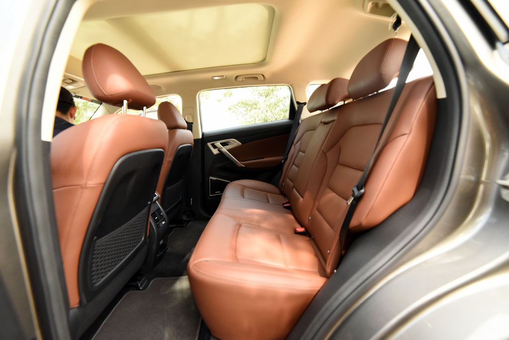Beralih duduk di belakang, keluasan yang ada cukup selesa, cuma ruang kepala sedikit terhad jika orang itu bertubuh tinggi apabila duduk di tengah. Di belakang konsol perehat lengan tersedia ventilator penyaman udara untuk penumpang belakang dan di bawah tersedia dua lagi port USB.