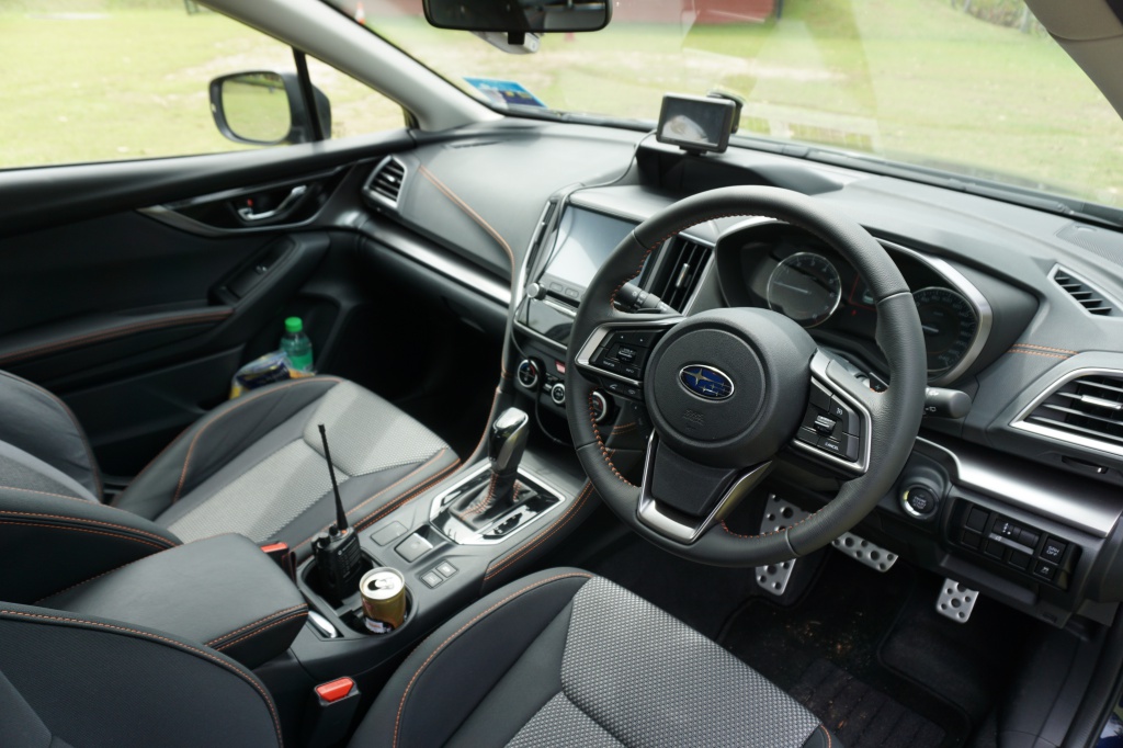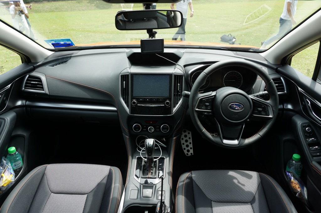 Jarak penglihatan juga baik kerana pilar direka kecil. Cermin bersaiz suku pada pilar A dan C mengurangkan titik buta. Terdapat banyak ruang di depan walaupun bahagian belakang agak gelap dan kapasiti but lebih besar. Subaru juga agak teliti dalam memberikan perincian kecil seperti kemasan gentian karbon artifisial pada tepi pintu. Malah tambahan ketinggian antara lantai dan siling memudahkan penumpang bertubuh tinggi mengakses ruang kabin.