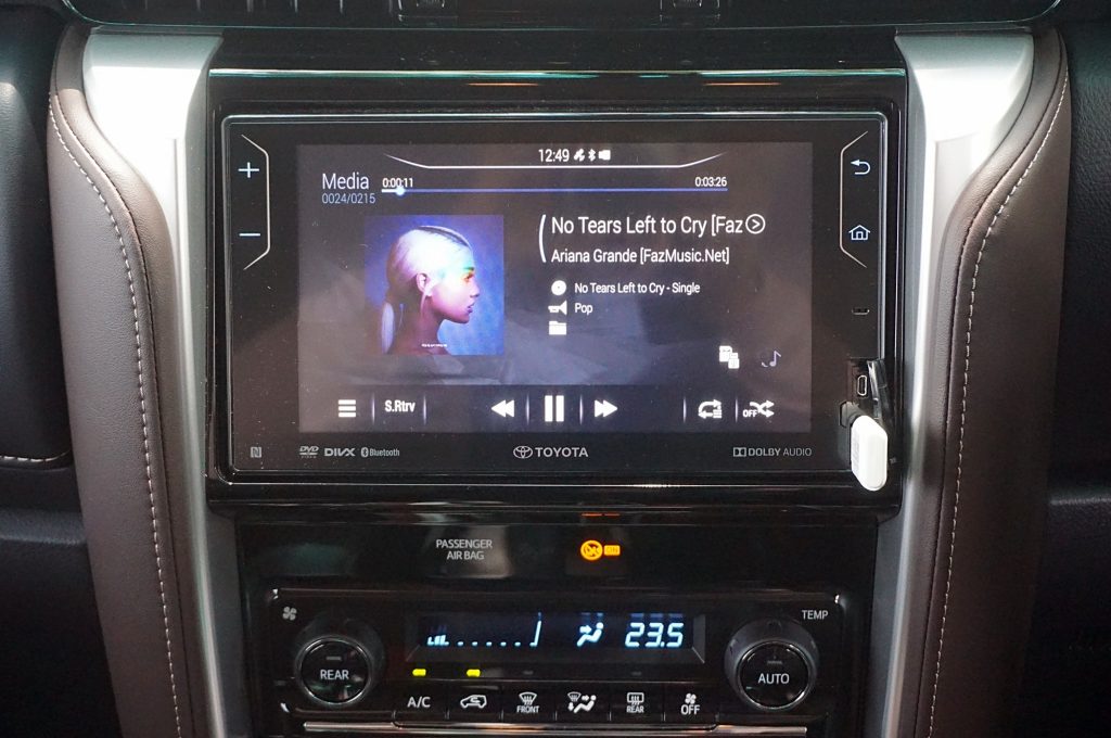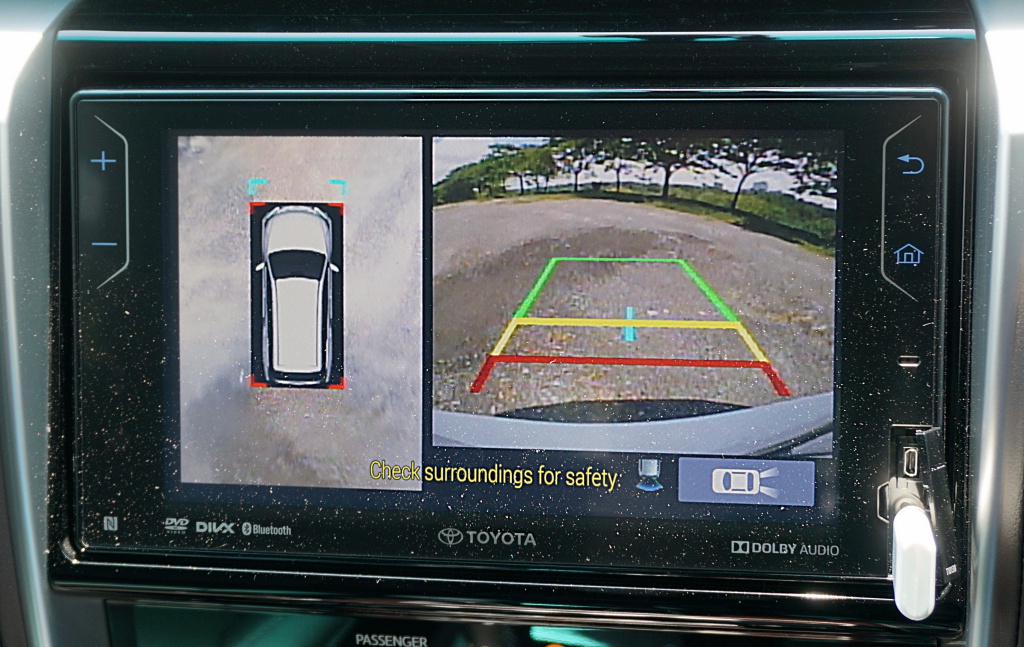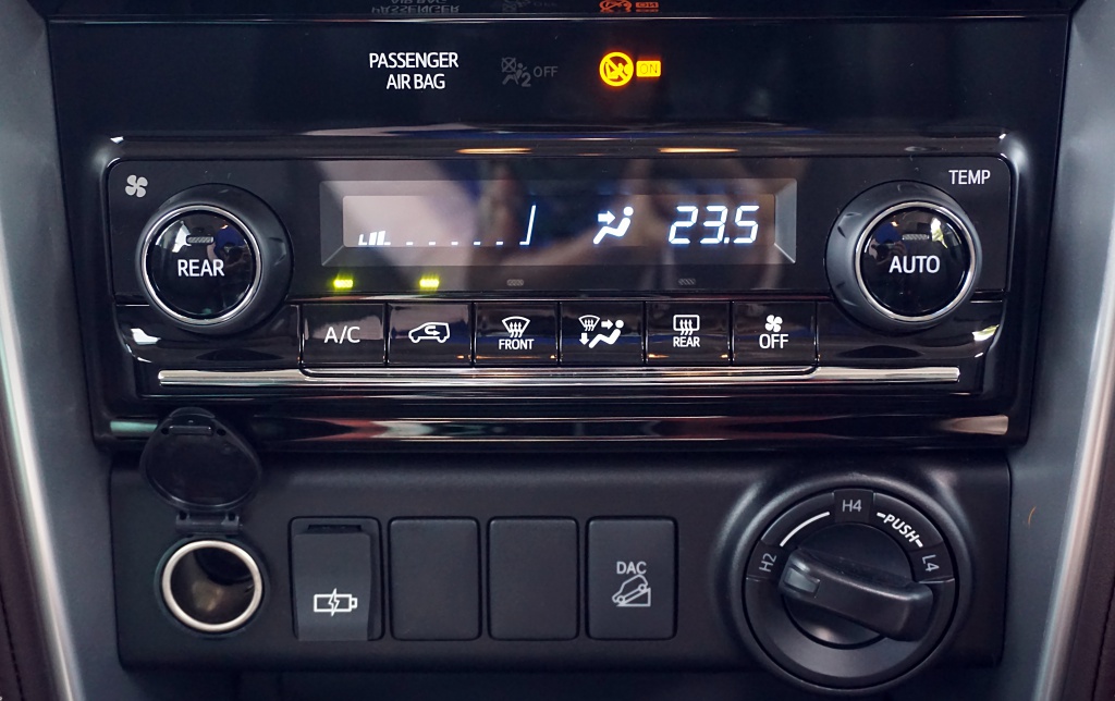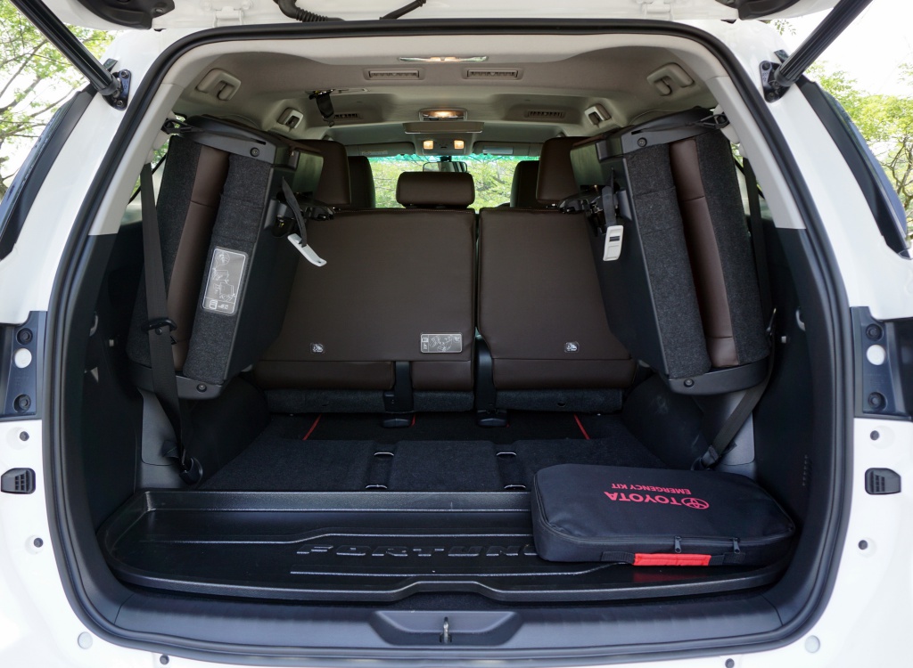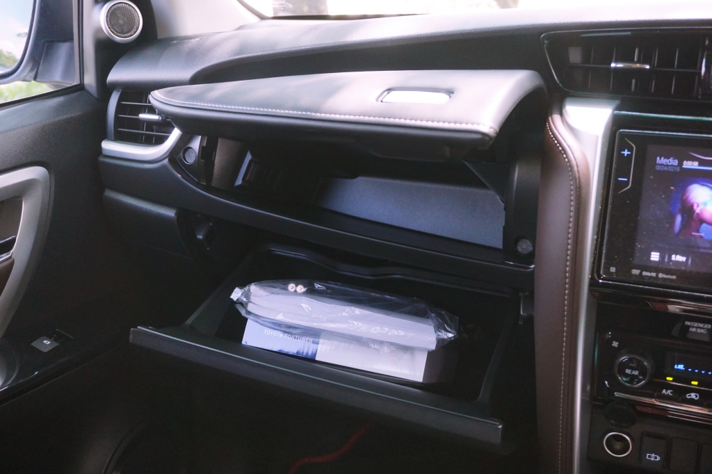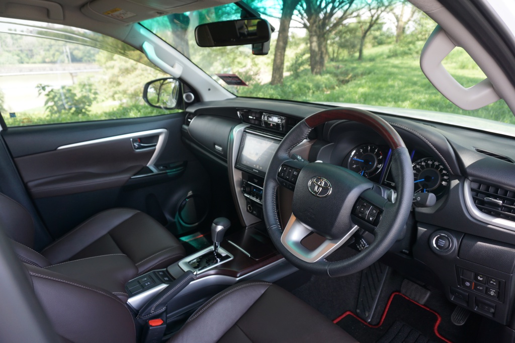 Sebaik duduk, posisi memandu tinggi dan pandangan depan nampak luas menghala jalan raya. Material kerusi lembut dan ruang sisi luas memberikan sokongan padu untuk menampung pelbagai saiz badan pemandu. Antara kriteria penting ketika mahu melenjan Fortuner ini di laluan off-road.
