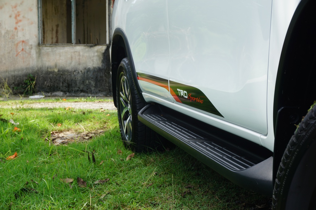 Memang sengaja menyarung kain batik lipat kipas di depan ketika mengambil Fortuner, Jumaat lalu. Mahu tahu sendiri, adakah mudah pemandu wanita seperti saya dengan baju kurung atau berkain dapat mudah melangkah masuk ke dalam kabin Fortuner yang tinggi dengan jarak kelegaan tanah 279mm.