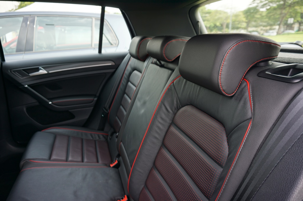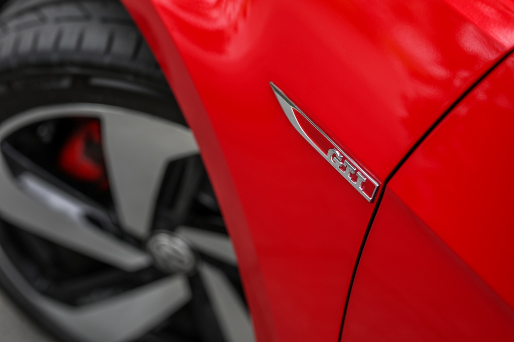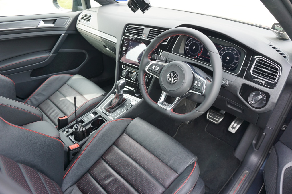 Versi GTI diserlahkan dengan lencana GTI pada stereng, tombol gear, dan sil pintu, manakala posisi duduk sangat santai. Kerusi semi bucket daripada kulit Vienna begitu halus memeluk bahagian punggung.