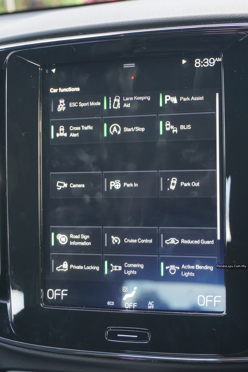 Kawalan pendingin hawa juga perlu dilakukan pada skrin tersebut. Cuma ia kurang praktikal ketika sedang memandu kerana anda perlu mengalihkan mata dari pandangan depan.