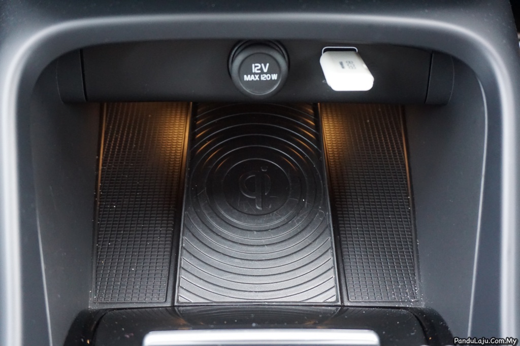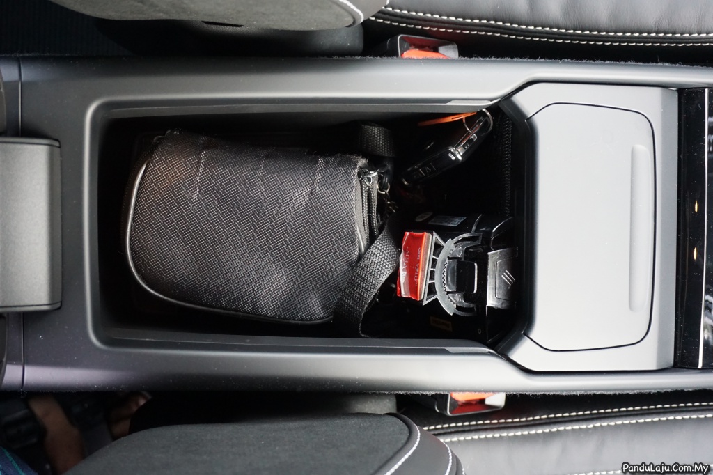 Kemudian bahagian bawahnya dibalut dengan fabrik lembut agar barangan tidak mengeluarkan bunyi bergesel ketika pemanduan. Ruangan simpanan tambahan lain turut tersedia pada bahagian depan yang mana terletaknya peranti kecil pengecas wayarles, dua slot USB dan di konsol tengah tersedia dua tempat meletak botol air.